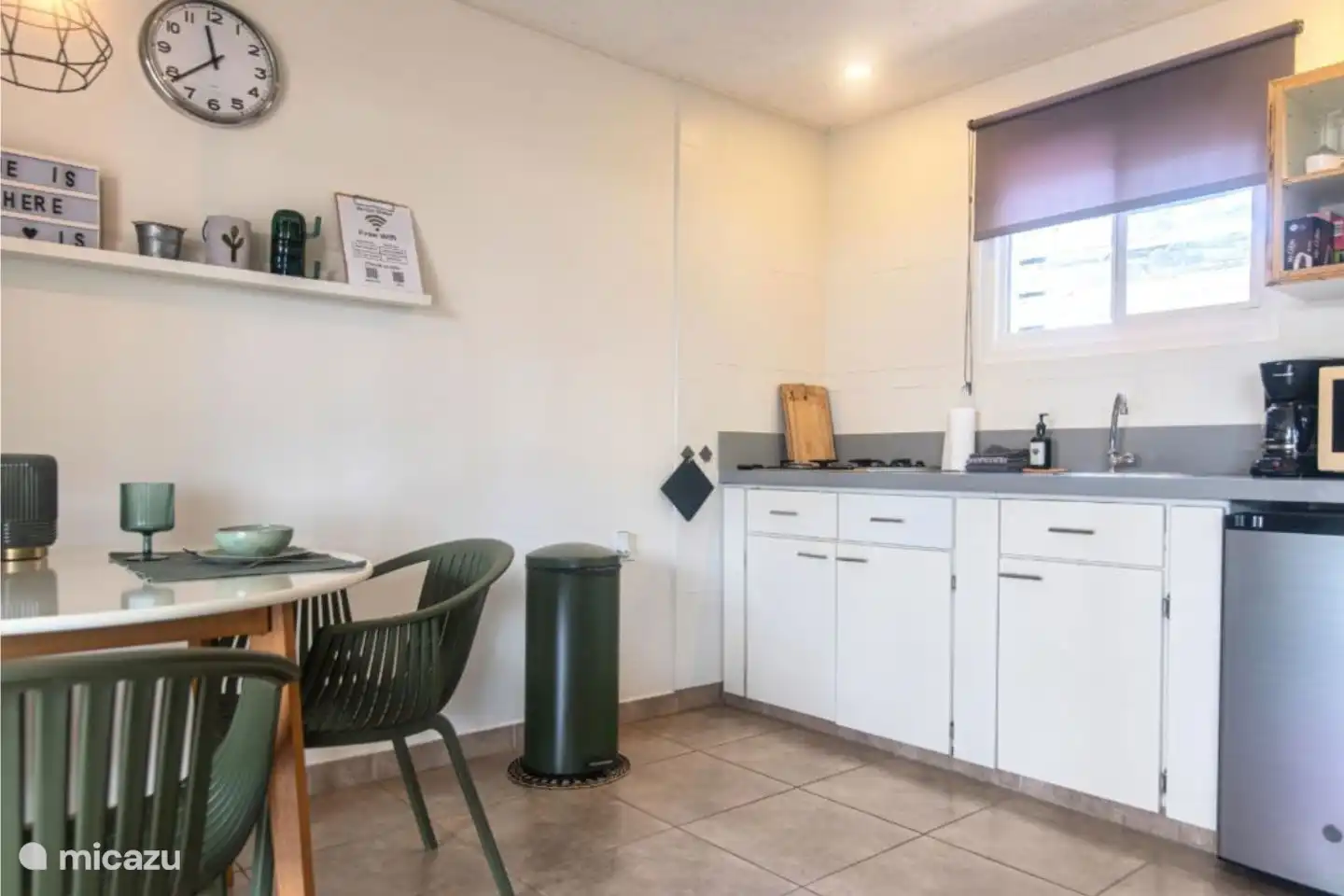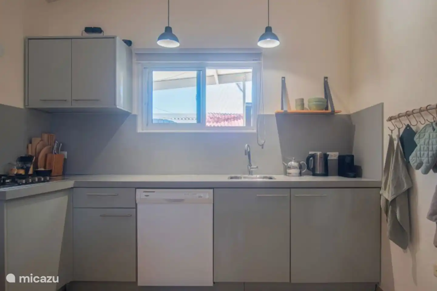 La maison de plain-pied avec de hauts plafonds se compose d’une cuisine, d’un salon, de 2 chambres, de rangements et d’une salle de bains. Avec une allée privée, un jardin privé et une grande terrasse extérieure couverte, qui fonctionne comme une « pièce extérieure ». Cette maison peut également être utilisée comme propriété locative.