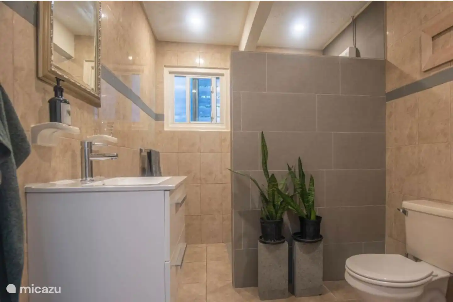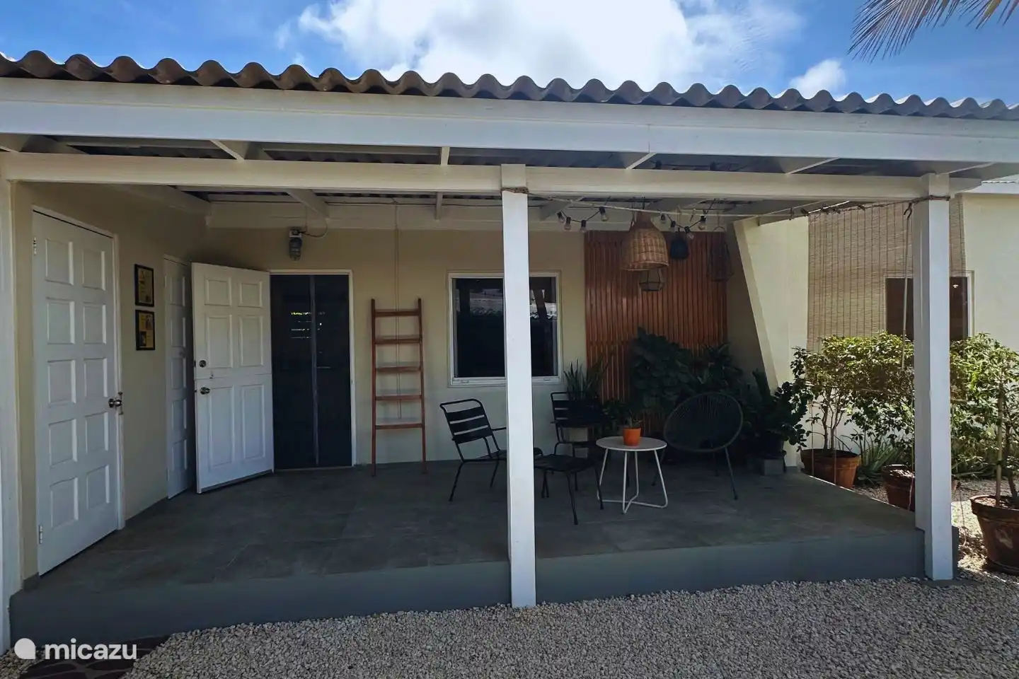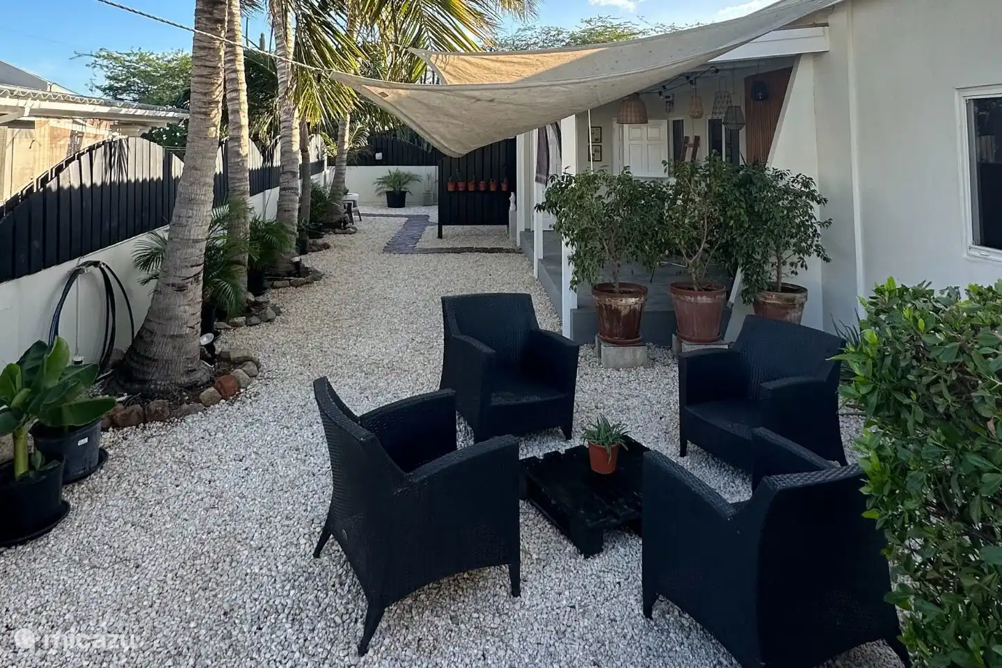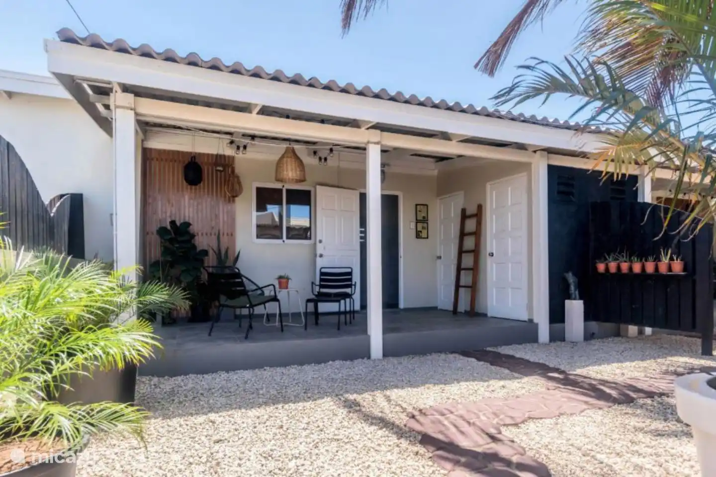 Une propriété prête à emménager à Aruba avec une maison et 3 appartements de vacances élégamment meublés dans un jardin de sculptures relaxant avec des palmiers ondulants, beaucoup de plantes vertes et une belle piscine longue.
