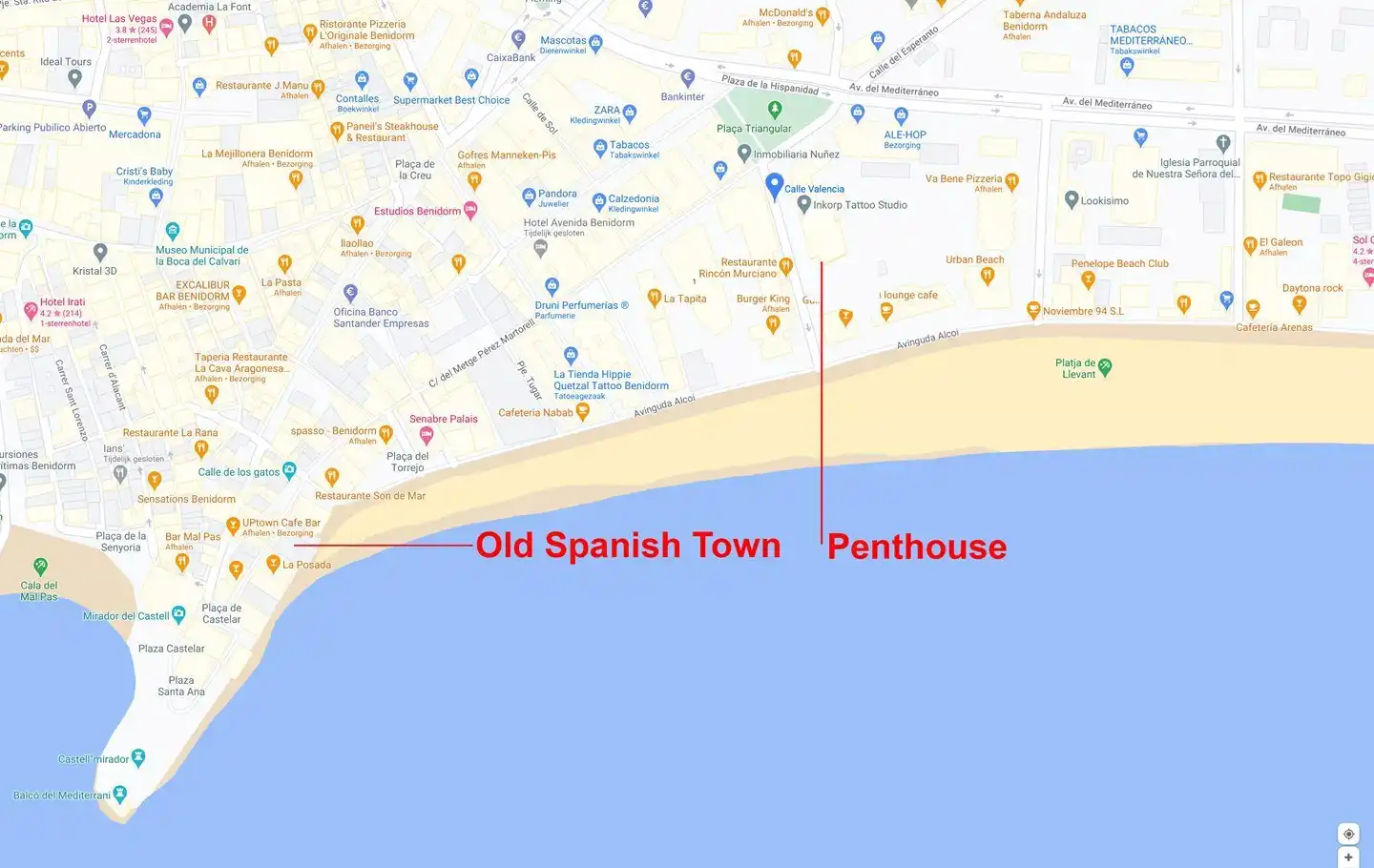 Emplacement : Le penthouse est situé à seulement 30 mètres de la célèbre plage de Levante et est entouré par le charme de la vieille ville espagnole. Profitez d’un emplacement unique où la ville et la plage se rejoignent parfaitement.