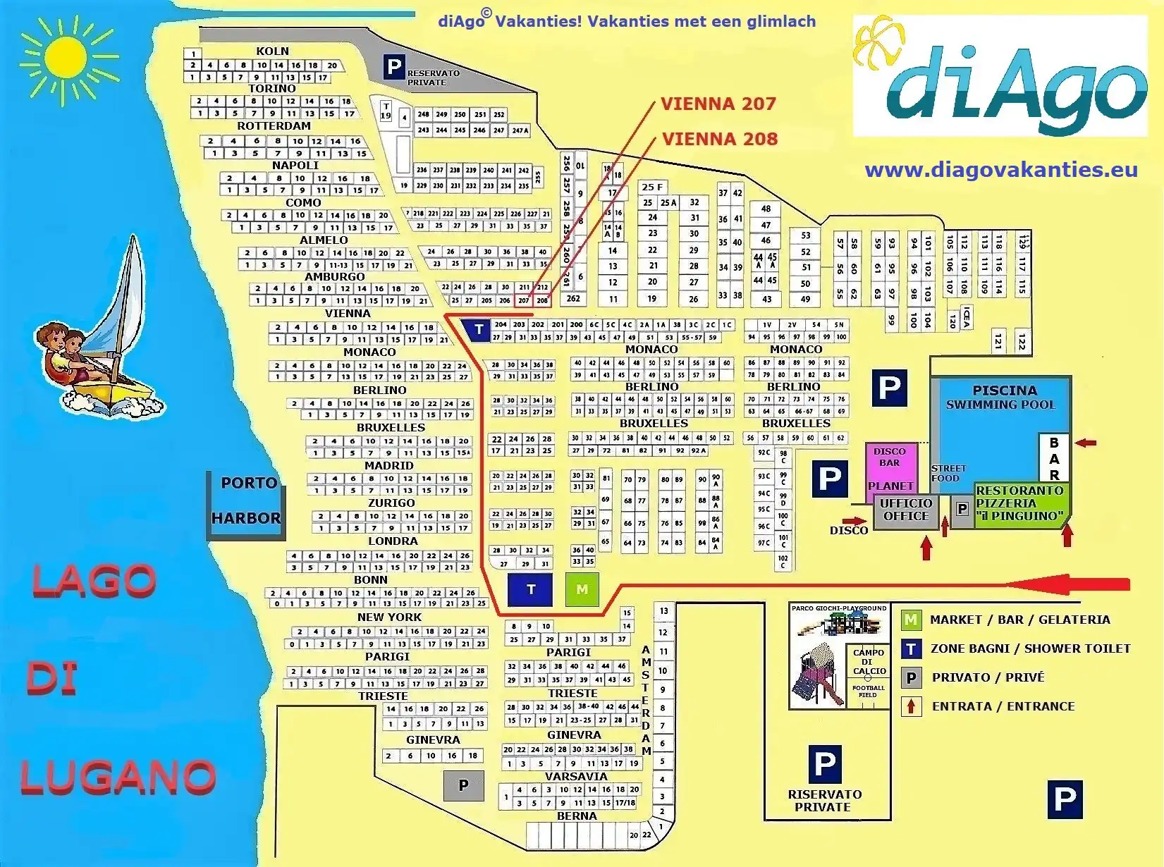A vendre : nos deux chalets l’un à côté de l’autre. Les deux chalets sont climatisés et disposent d’une salle de bain privée et sont situés au Camping International à Porlezza, Côme.