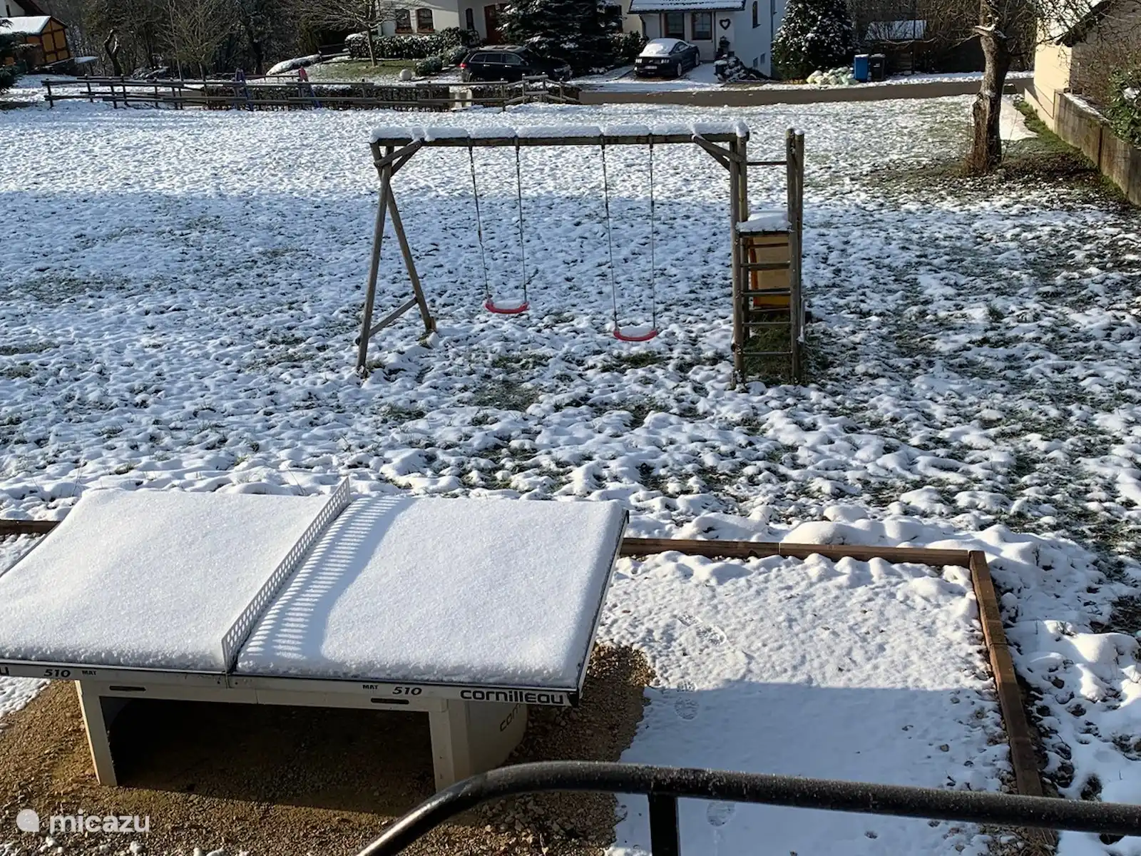 - Jardin clos avec chaises longues, table de ping-pong et équipements de jeux
