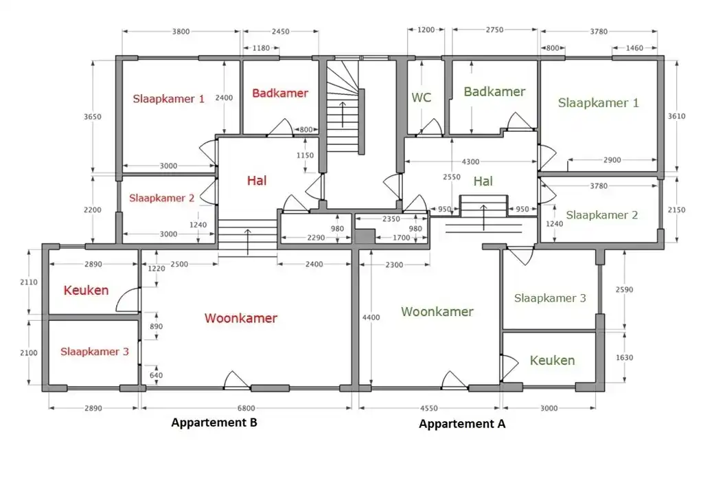 Les appartements sont côte à côte, au 1er étage, et ont chacun leur caractère.