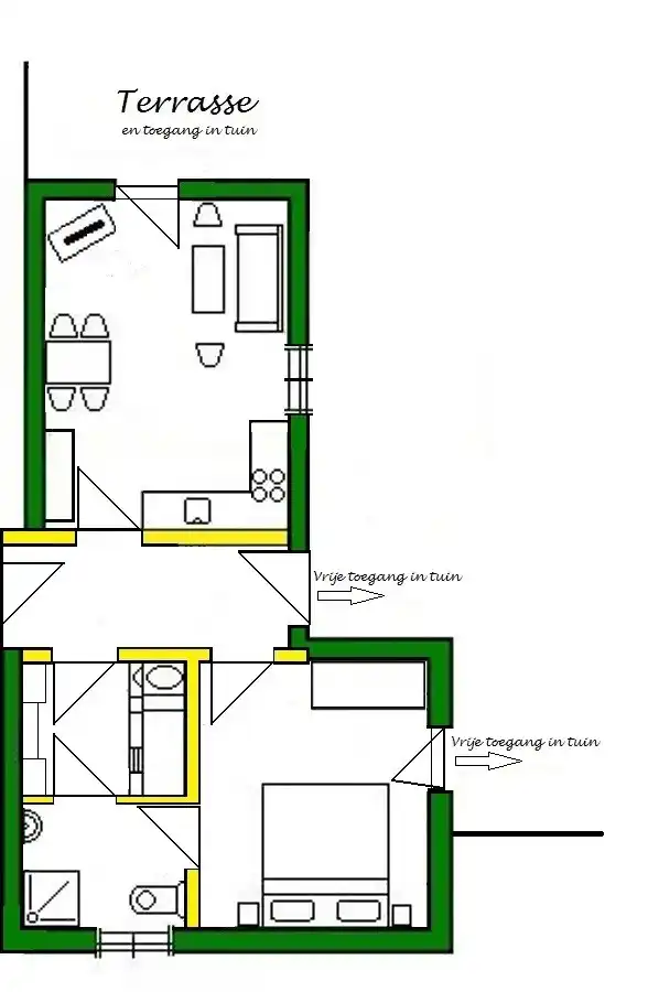 Nous avons fabriqué et meublé l'appartement Aconitum nous-mêmes dans notre maison ! Cette maison est faite pour que les personnes handicapées puissent aussi y passer leurs vacances. L'intérieur a été conçu pour permettre aux personnes allergiques à la poussière de maison de profiter agréablement de leurs vacances bien méritées.Cette maison est au rez-de-chaussée avec une grande terrasse où plonge le jardin. Dans ce grand jardin fleuri unique, vous pourrez vous détendre et vous détendre, où l'intimité est garantie et où chacun peut trouver sa place. Il est également idéal pour les familles avec enfants grâce à un trampoline, une aire de jeux, une piscine et quelques animaux.