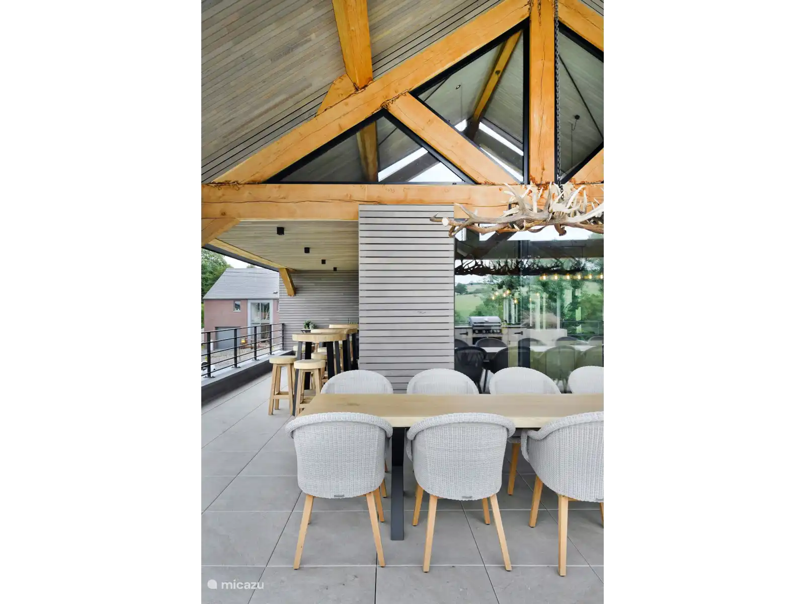 La maison de vacances dégage une atmosphère chaleureuse, ce qui en fait l’endroit idéal pour les réunions de famille ou les voyages entre amis. Le logement est privé pour vous, où vous pouvez utiliser une cuisine entièrement équipée et des installations de bien-être. Vous pourrez vous baigner dans la piscine chauffée, le jacuzzi ou profiter du sauna finlandais avec vue panoramique. Vous pourrez également vous détendre dans le salon ou dans le jardin.