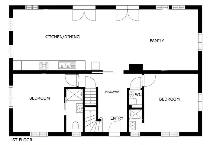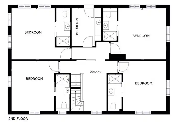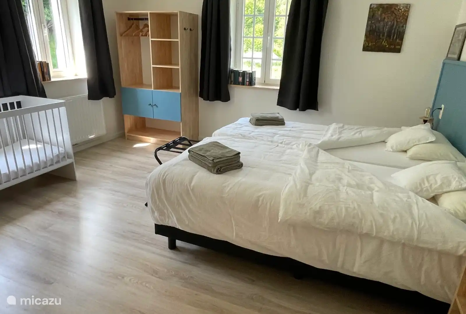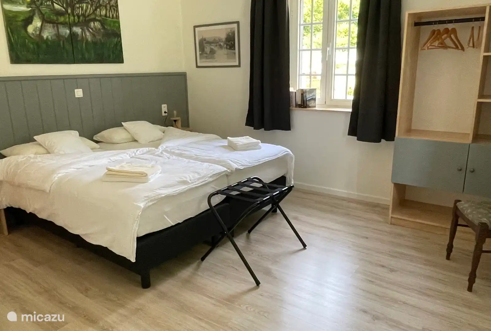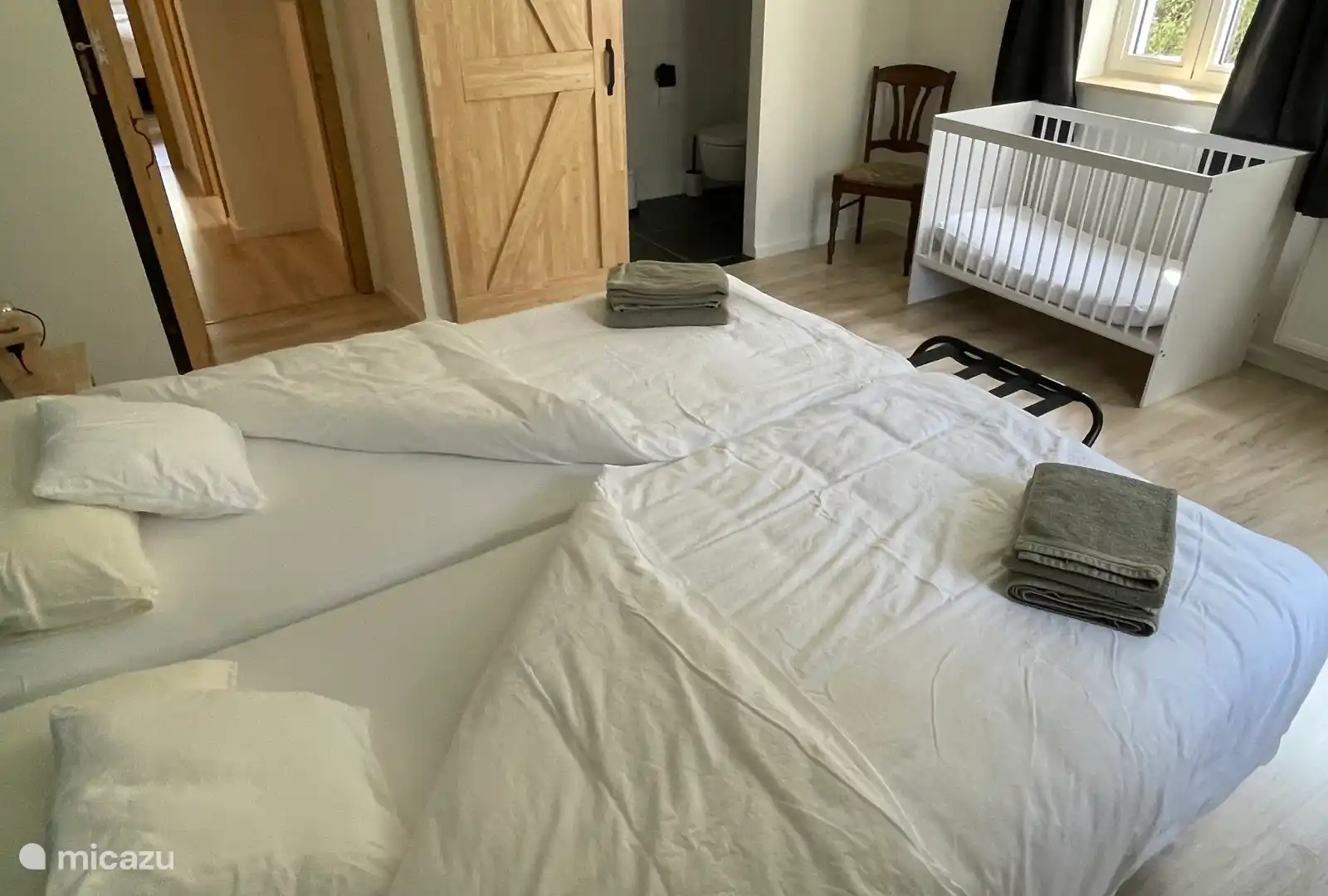 Un total de 7 chambres, dont 6 chambres avec lit double et salle de bain privée avec toilettes, lavabo et douche. 2 chambres avec lit de camp et 2 chambres sont situées au rez-de-chaussée. 1 pièce avec lits superposés et lavabo. Linge de lit, de bain et de cuisine fourni.
