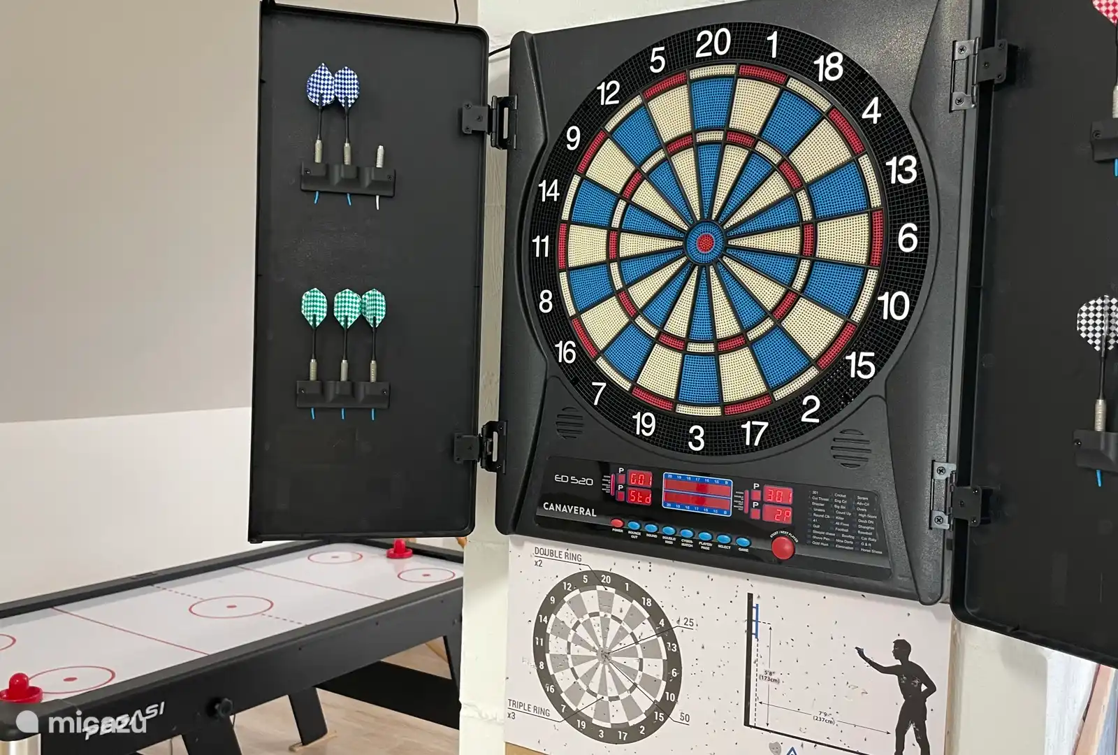 Salle de jeux avec table de ping-pong, jeu de fléchettes électroniques et table de air hockey. Pour les tout-petits, un spectacle de marionnettes et un magasin. Pour l’extérieur, un jeu de Cubb et un match de badminton avec filet.