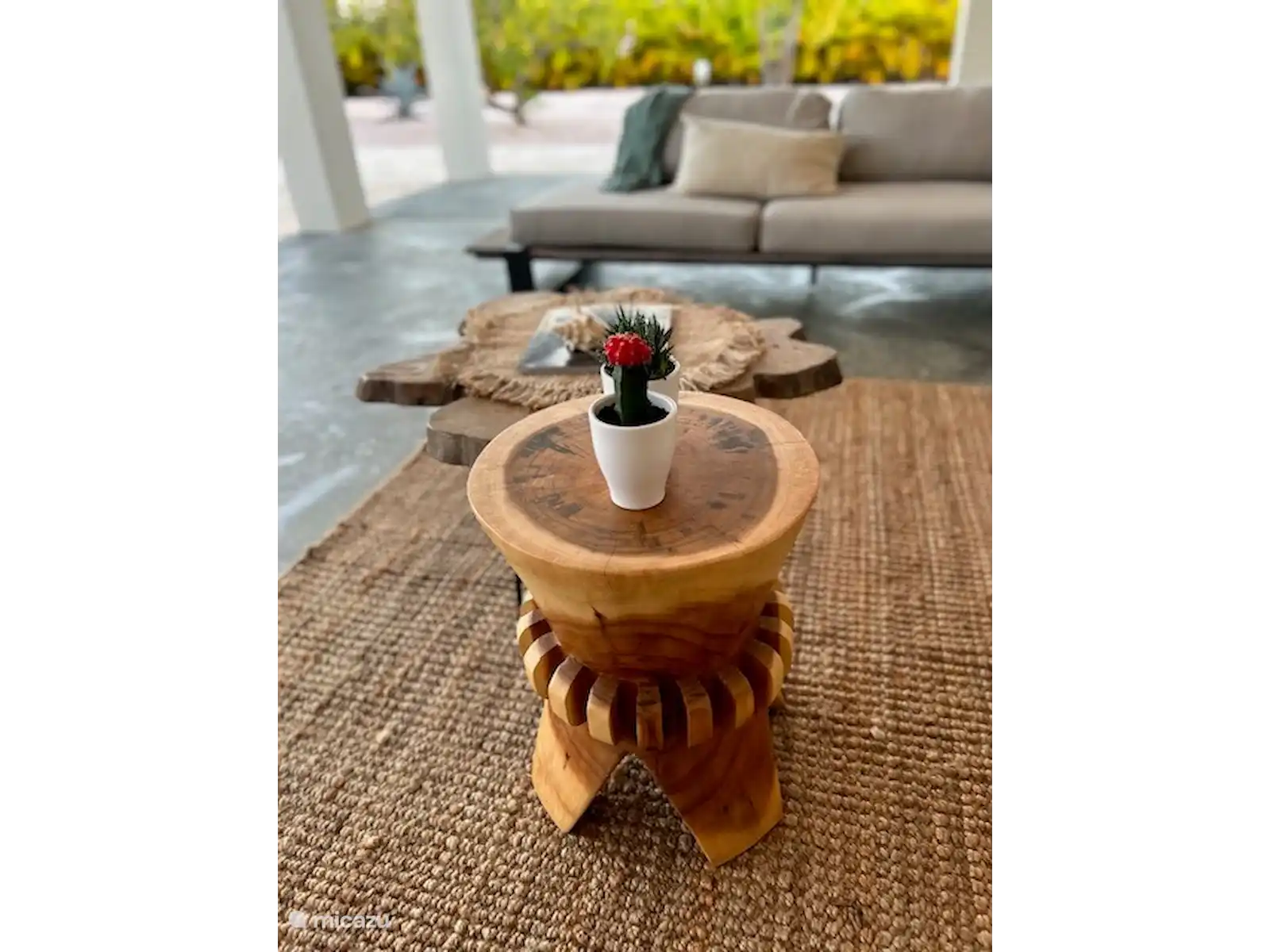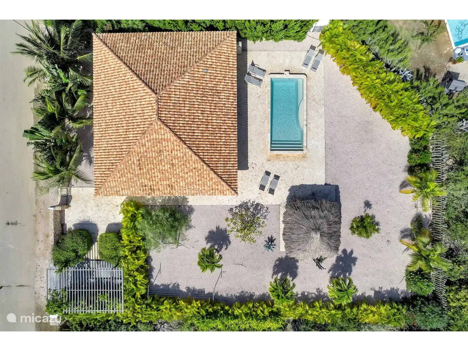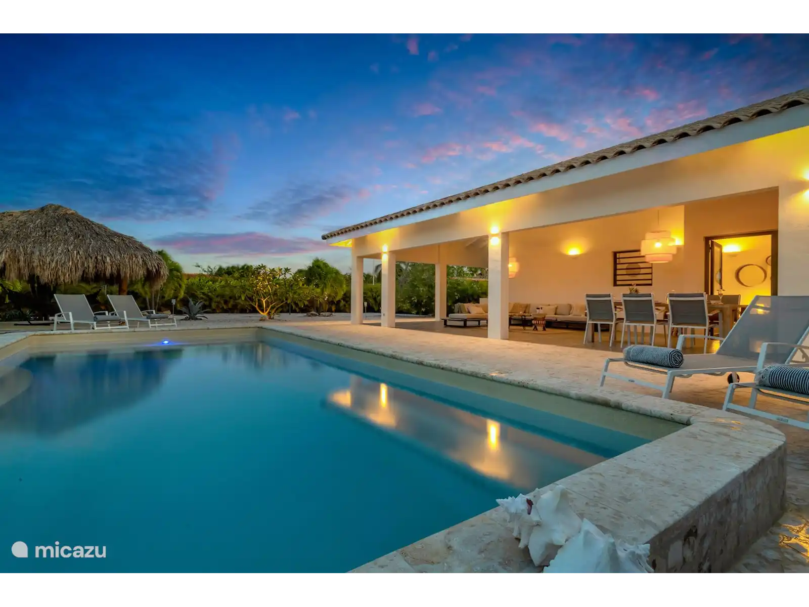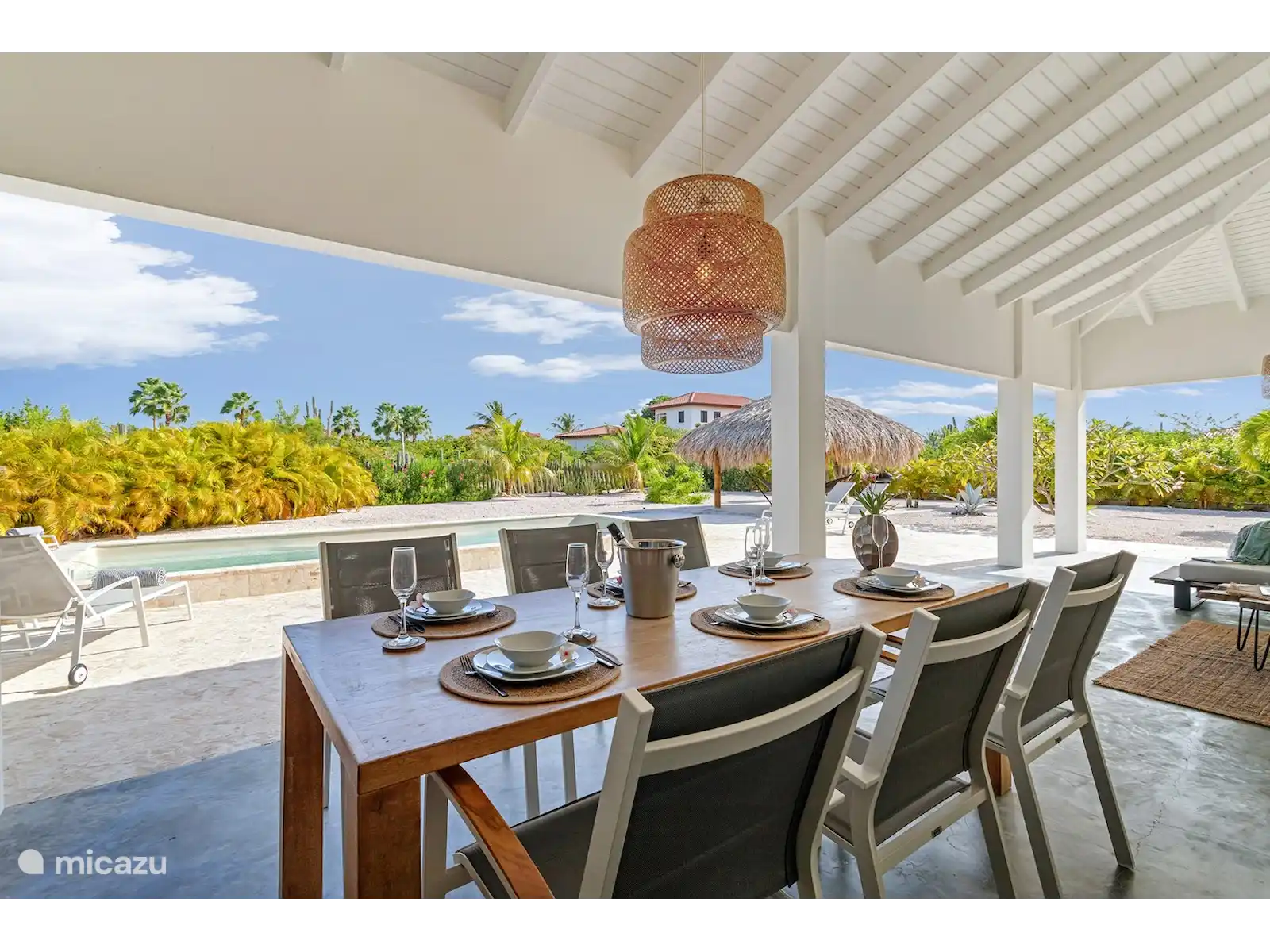 Depuis le porche, vous avez une vue sur le magnifique jardin et la piscine privée.