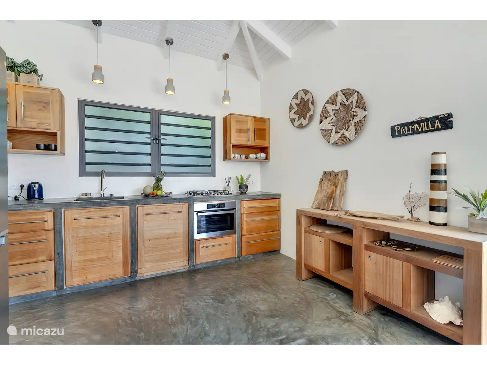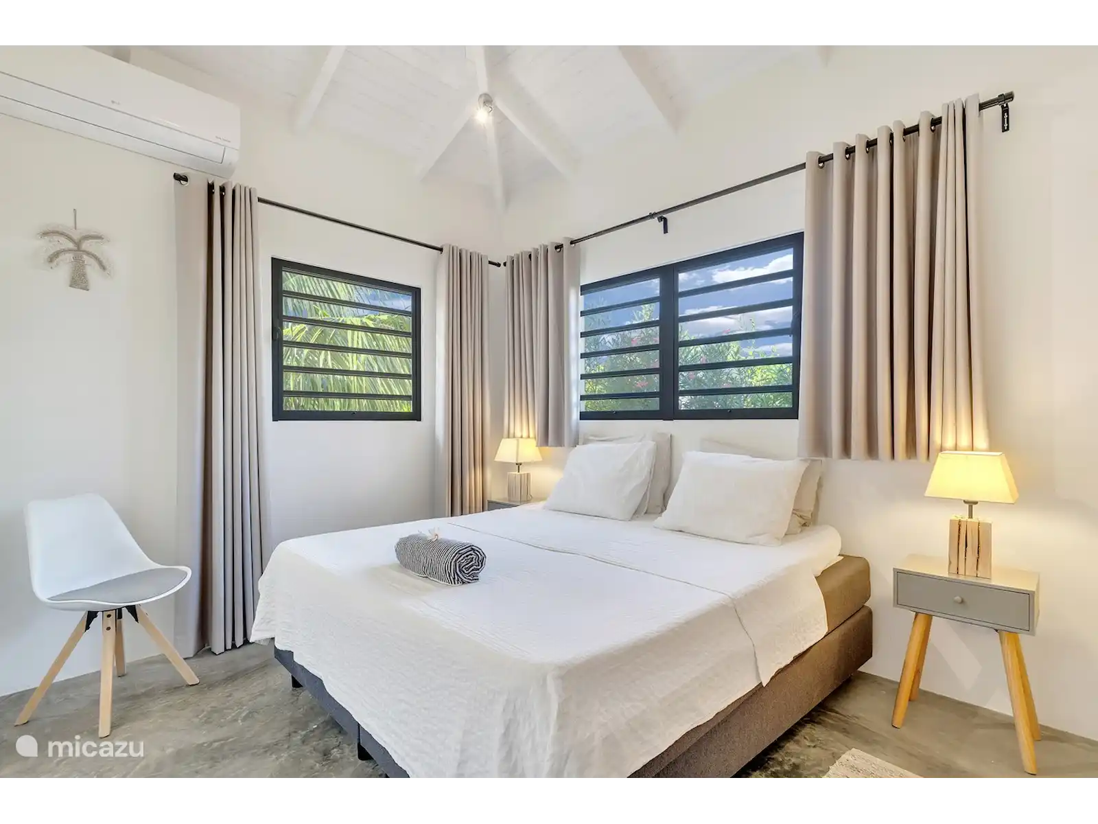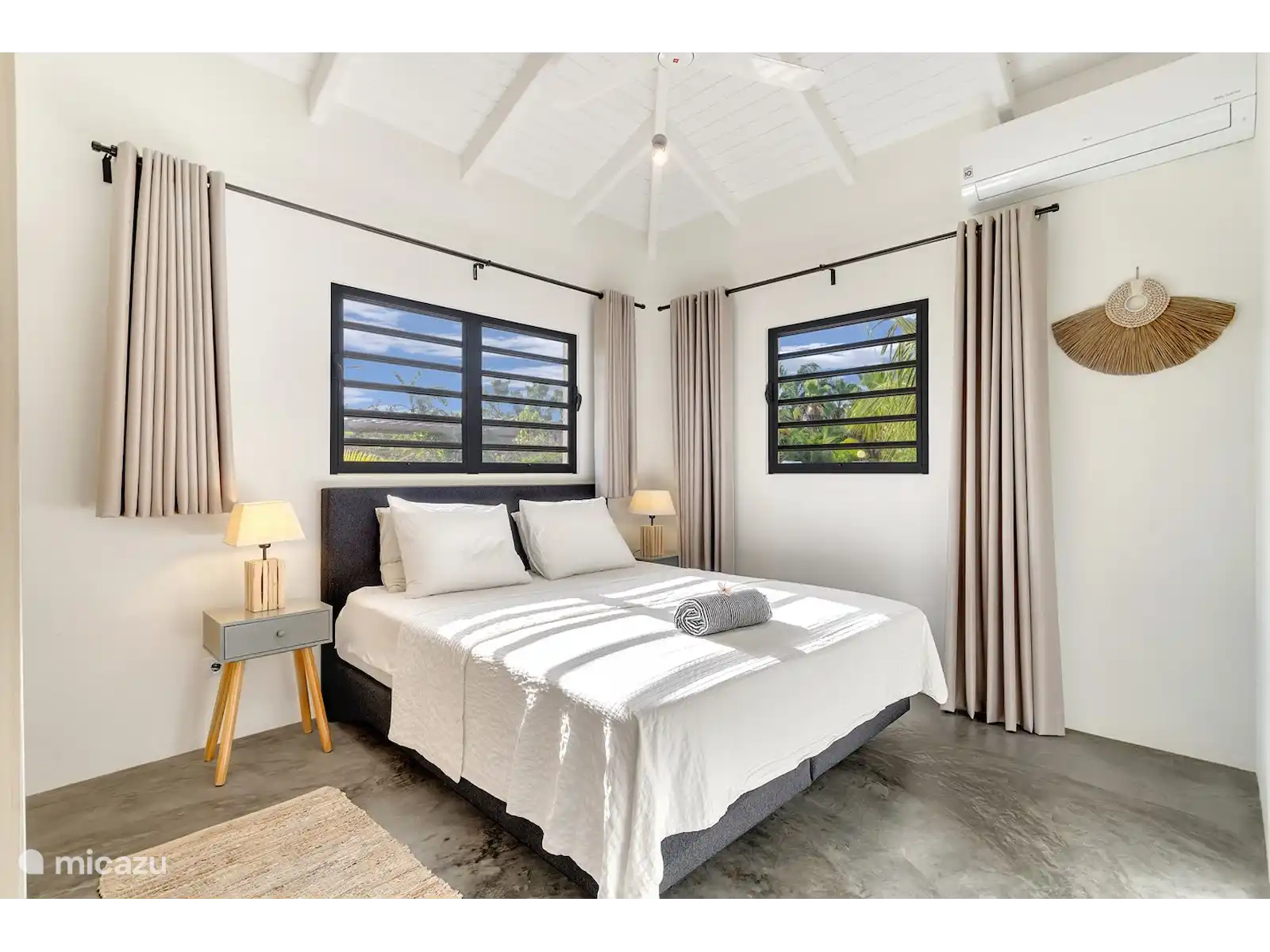 Palm Villa offre un espace pour 6 personnes. Des fenêtres à volets, des ventilateurs de plafond et la climatisation sont fournis dans chaque chambre.
