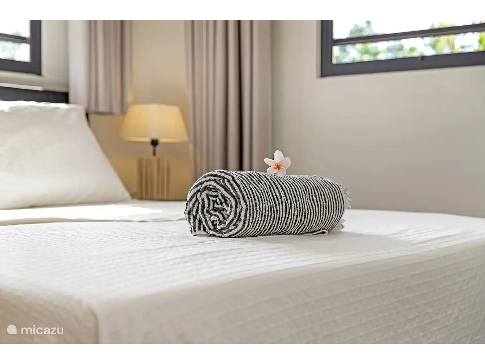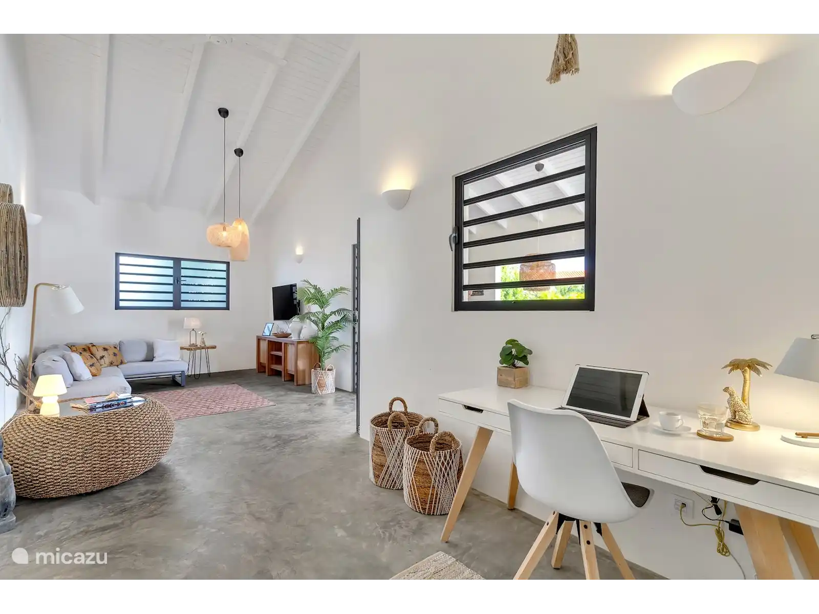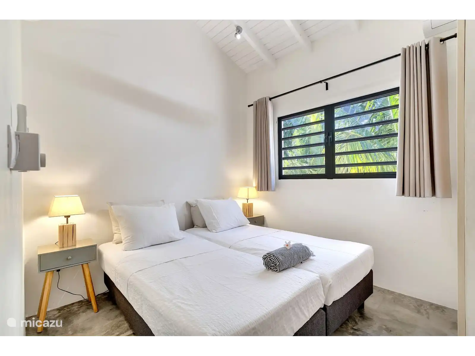 Palm Villa offre un espace pour 6 personnes. Des fenêtres à volets, des ventilateurs de plafond et la climatisation sont fournis dans chaque chambre.