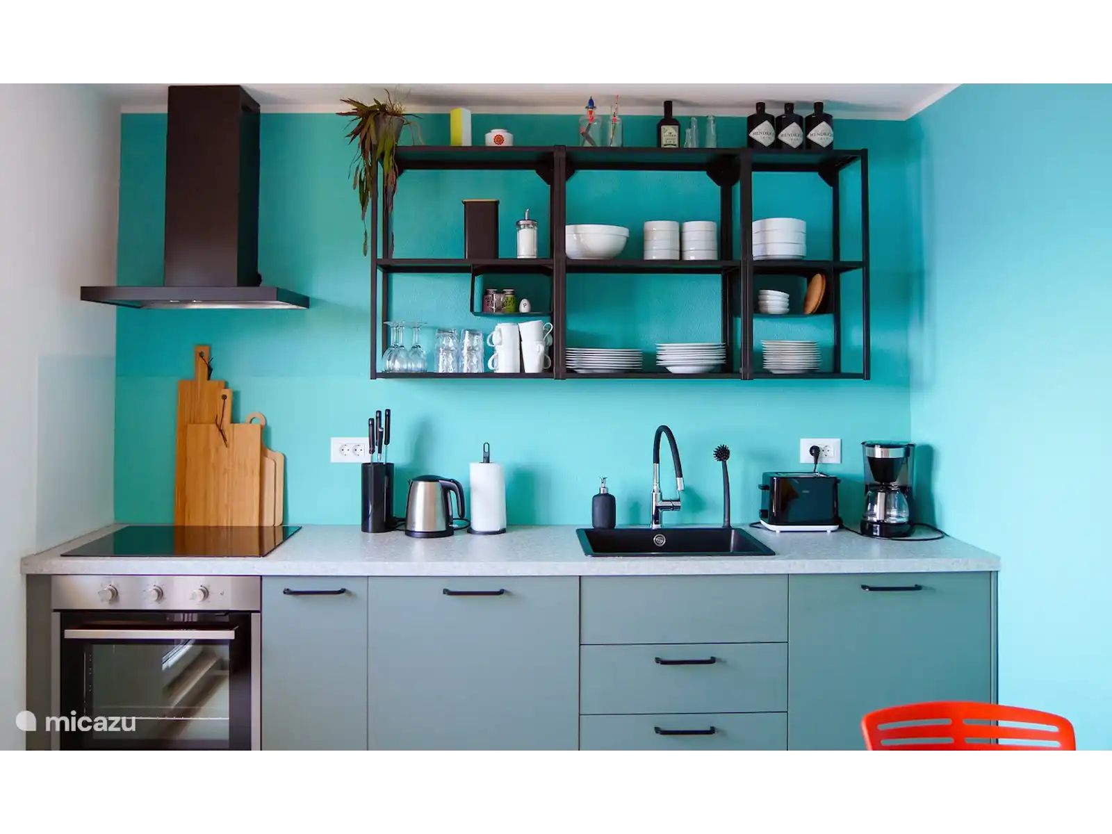 Dans une cuisine moderne et en plein air, avec lave-vaisselle, plaissière, four et réfrigérateur avec compartiment congélateur, cuisiner peut être amusant même en vacances. Une hotte extractrice assure un bon air dans la cuisine-salon même pendant la cuisson. Pour que vous puissiez aussi savourer la nourriture, nous avons fourni un équipement de haute qualité avec des plats en porcelaine et de magnifiques verres. Une table de créateur moderne avec des chaises assorties vous invite à passer des heures de plaisir. La salle de bain possède un petit balcon avec une vue directe sur la mer.