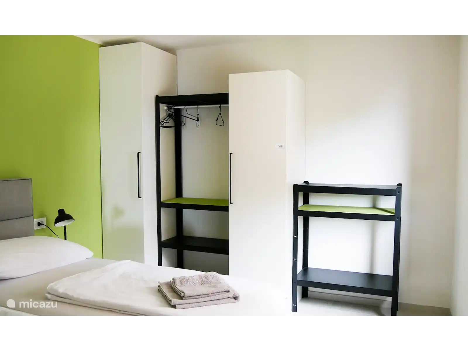 Un grand lit double confortable (lit à sommier) avec matelas séparés, qui peuvent être séparés et peuvent donc aussi servir de deux lits simples. Dans le placard spacieux, il y a de la place pour tout ce que la valise a à offrir. Un canapé-lit double confortable dans le salon offre des heures de détente.