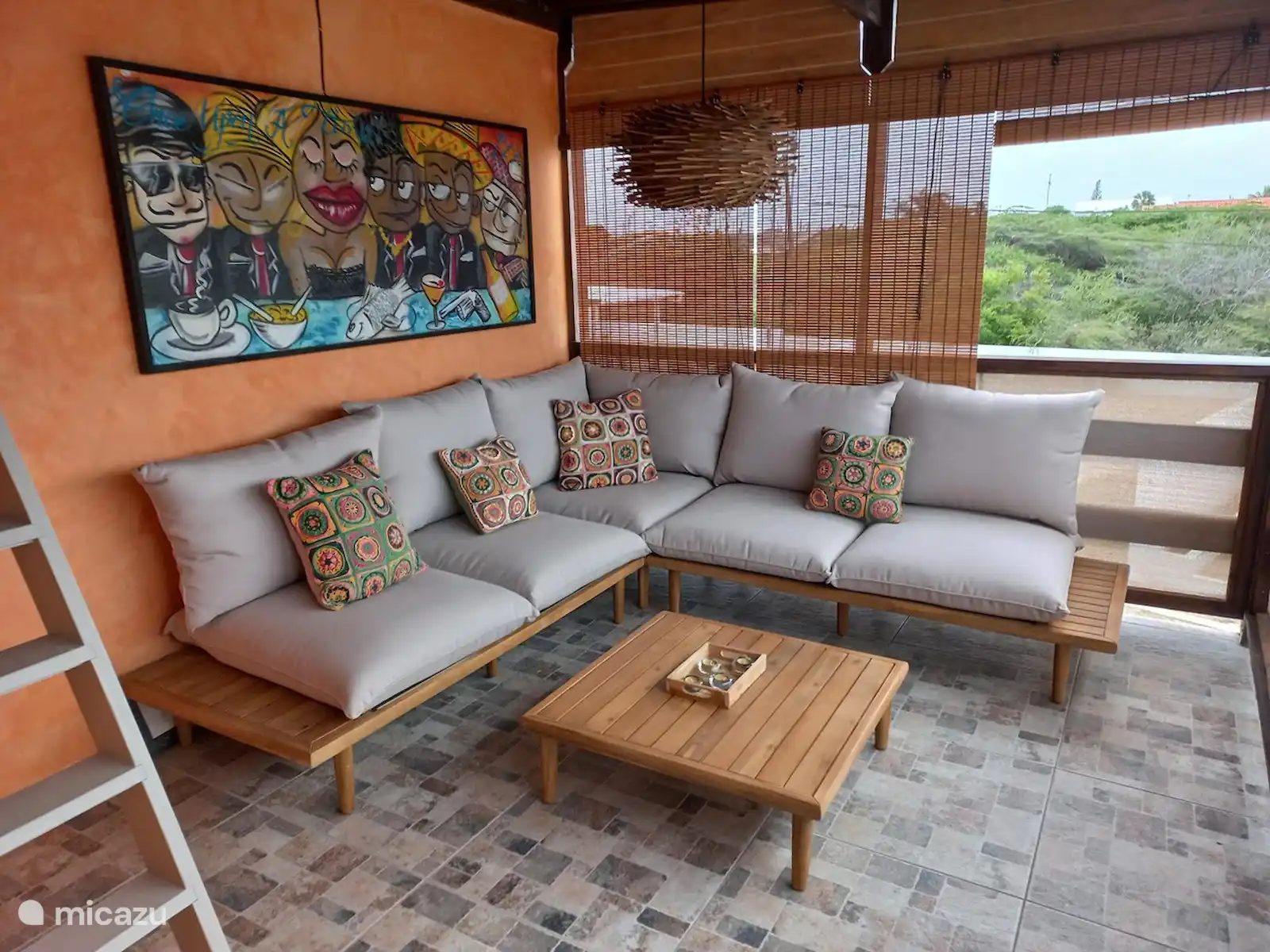 La maison est située "au vent" à 15 minutes à l'ouest de Willemstad sur la partie la plus étroite de l'île, à seulement 10 minutes des plus belles plages et de l'aéroport. La maison est entièrement meublée et se situe dans un petit complexe en devenir. , cuisine , toilettes invités et débarras avec machine à laver au rez-de-chaussée. Au premier étage se trouvent 2 chambres avec un lit double et la climatisation et la salle de bain avec douche à l'italienne et WC.La chambre principale donne accès au balcon spacieux avec salon et les escaliers sur le toit avec une belle vue sur les environs et la mer du côté nord. Dans le jardin privé se trouve une grande terrasse face au vent et à l'arrière se trouve une piscine pour se rafraîchir et vous pourrez vous détendre sur l'un des transats.
