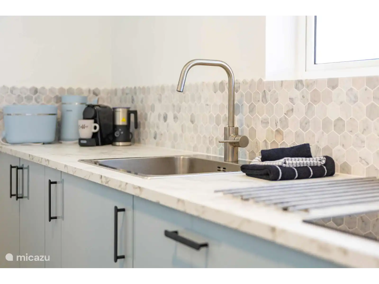 La nouvelle cuisine est entièrement équipée de tous les appareils modernes dont vous avez besoin pendant votre séjour, tels qu’un four/micro-ondes, une plaque de cuisson, un lave-vaisselle, une cafetière et une machine Nespresso. Il y a aussi une machine à laver et à l’extérieur, vous trouverez deux cordes à linge spacieuses. Les serviettes et les serviettes de plage sont bien sûr incluses, vous pouvez donc profiter sans souci.