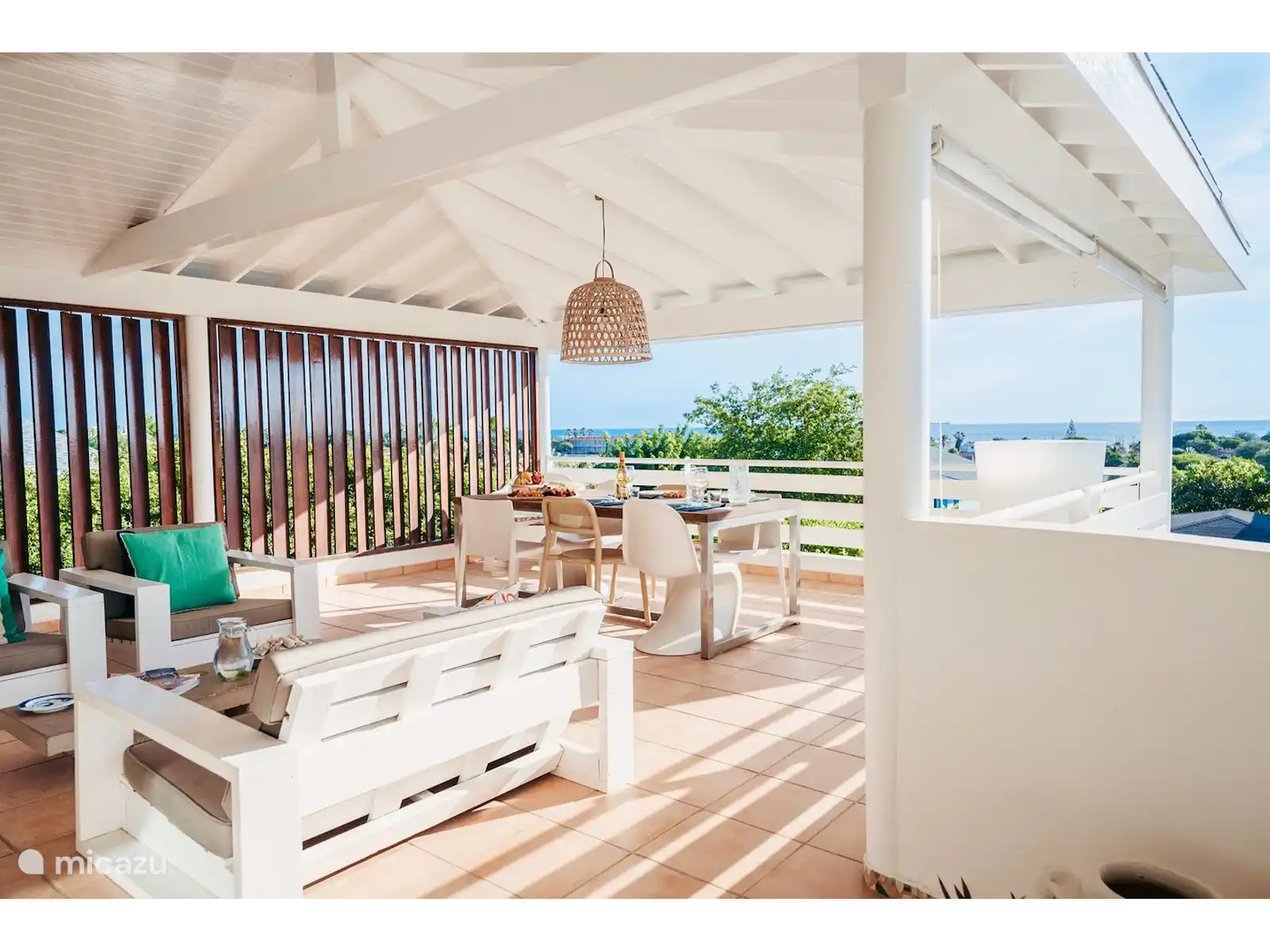 2 grandes terrasses couvertes, bien positionnées pour la brise de l'océan, un mur de volets verticaux en bois dur réglable du côté au vent, parfait pour se divertir