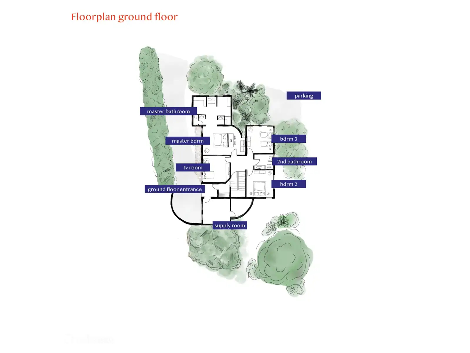 - Cour entièrement paysagée, comprenant des bougainvilliers, des manguiers et des palmiers entretenus par des professionnels