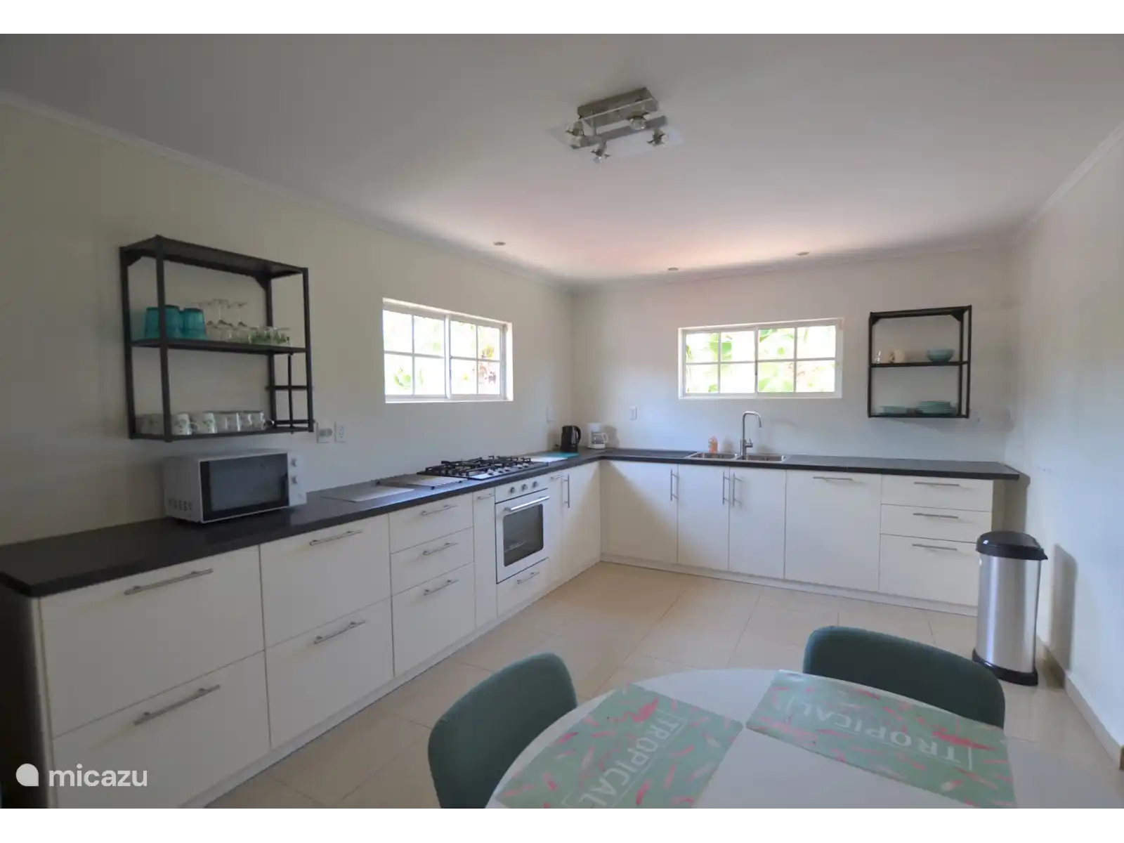 Il offre 2 salons, 3 cuisines, 4 chambres. 2 chambres ont une salle de bain privée et 2 chambres partagent la troisième salle de bain. Toutes les chambres disposent de la climatisation. La villa dispose d’un beau jardin tropical avec une piscine privée, beaucoup d’intimité et des palmiers matures. Il est bien situé sur le vent ce qui le rend très agréable. L’endroit idéal pour profiter, se détendre et se détendre ou aller à l’une des plages et restaurants à proximité.