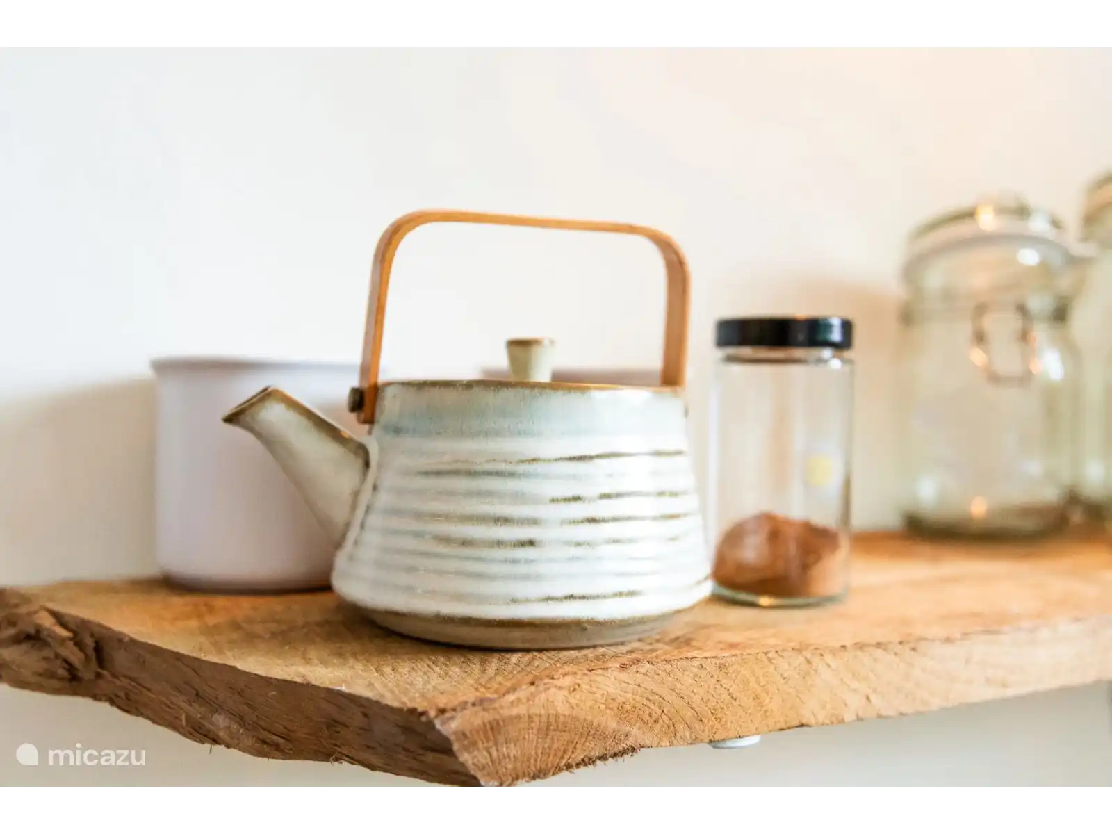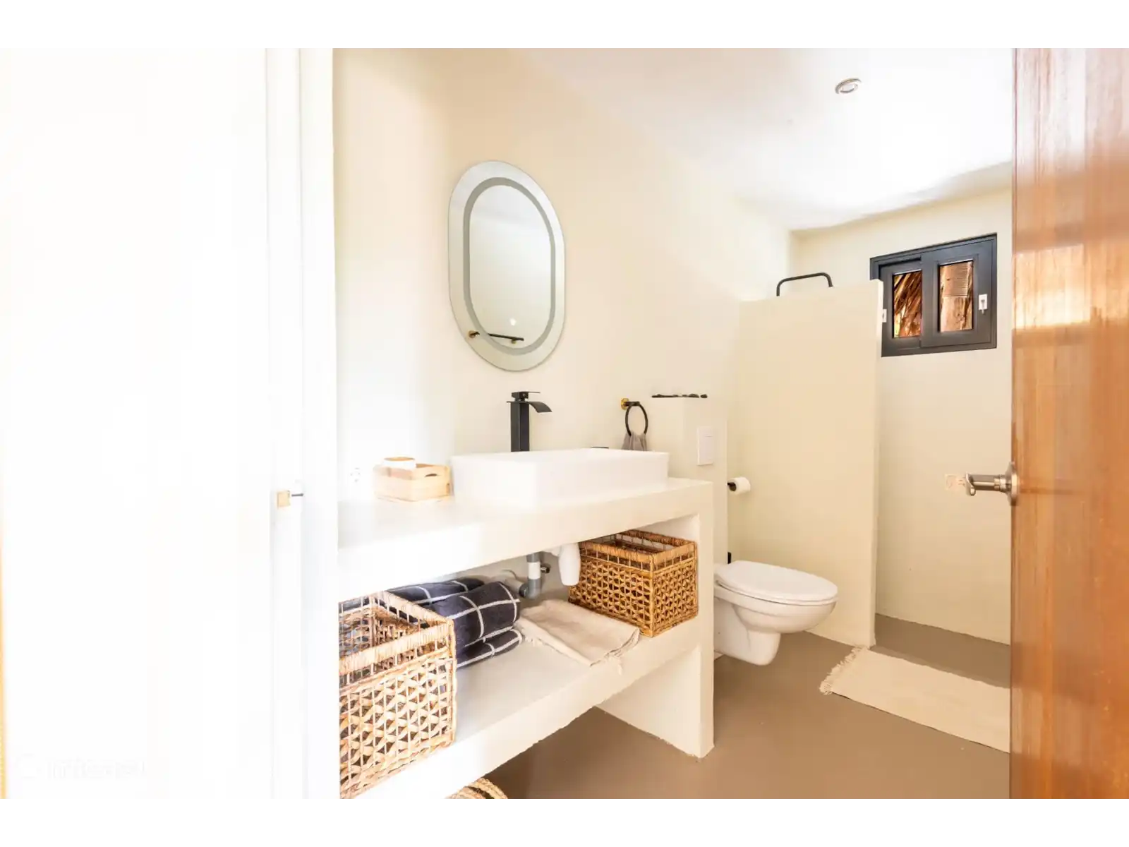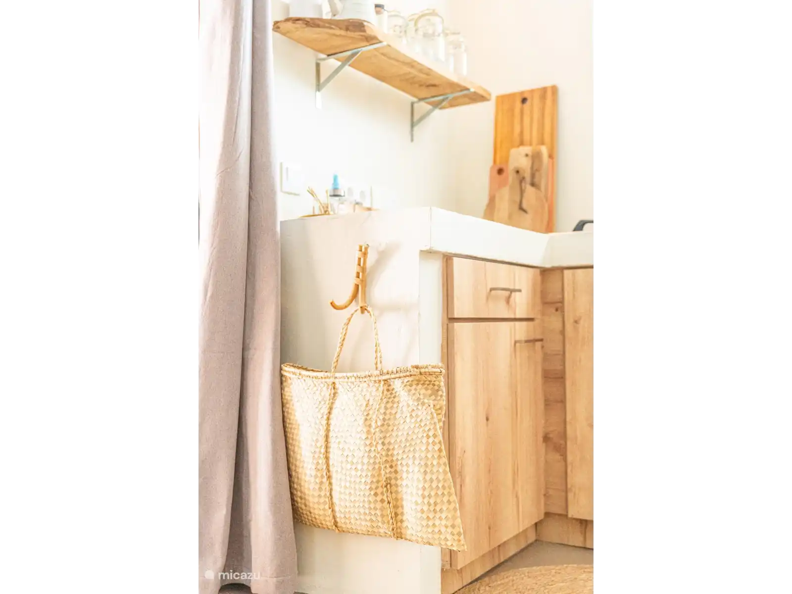 Intérieur attrayant : L’appartement est décoré avec des matériaux naturels et des couleurs chaudes, créant une atmosphère sereine et accueillante.