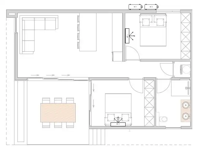 Les deux chambres peuvent accueillir jusqu'à 4 personnes et les deux chambres disposent de lits queen-size et de la climatisation. La salle de bain avec douche à l'italienne et double vasque est équipée de façon moderne et offre suffisamment d'espace.
