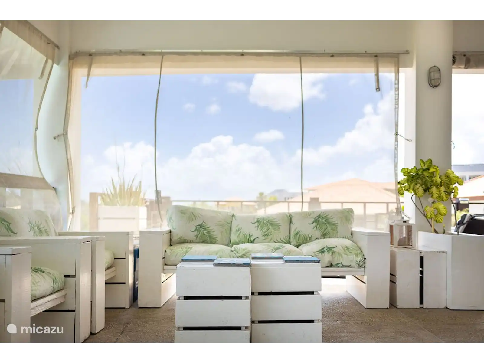 En ouvrant complètement les portes coulissantes des volets, l'espace de vie est doublé avec la terrasse adjacente. De là, vous pourrez profiter de la vue panoramique sur Jan Thiel et les eaux espagnoles.