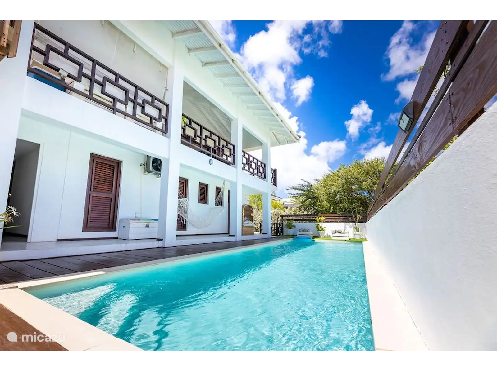Vous pourrez vous prélasser ensemble autour de la belle piscine de 11 x 3 mètres et profiter de vos vacances à Curaçao. La grande terrasse entourant la villa dispose de plusieurs coins salons où vous pourrez profiter de la brise, bronzer ou vous détendre à l'ombre.