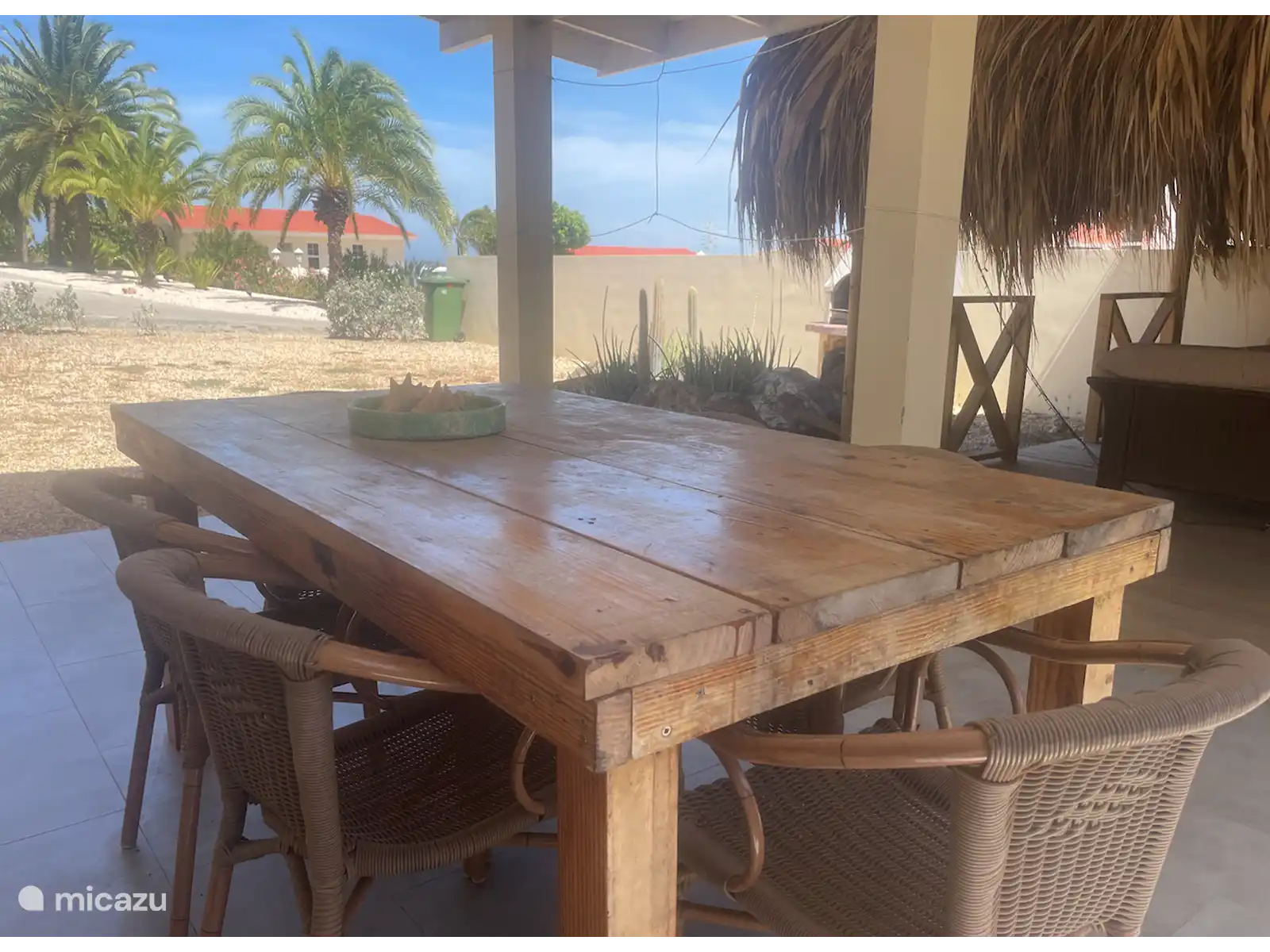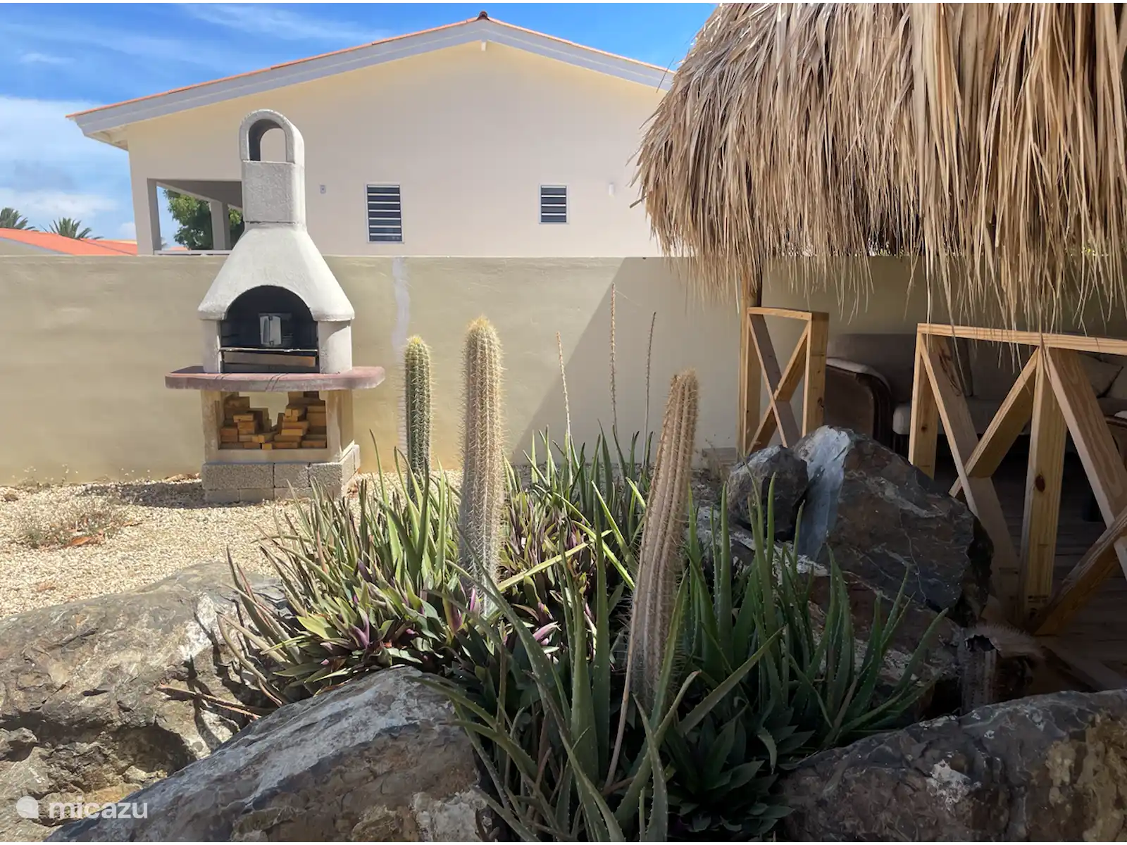 La vie en plein air étant au cœur de Curaçao, Cas Brasa dispose de nombreux espaces de vie extérieurs. Il y a une petite terrasse devant la maison. Sur le côté de la maison se trouve un grand porche avec table à manger. Adjacent au porche se trouve une palapa avec coin salon. Cette palapa est un endroit agréablement frais et ombragé en journée et l'espace idéal pour prendre un verre et jouer à des jeux le soir ! A côté de la palapa se trouve un barbecue en pierre, idéal pour un délicieux dîner à la maison !