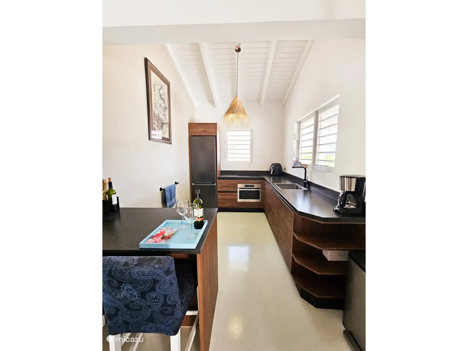 La villa est très belle et entièrement meublée. Une cuisine ouverte spacieuse avec une plaque électrique, un réfrigérateur, un micro-ondes, un lave-vaisselle et une friteuse à air.