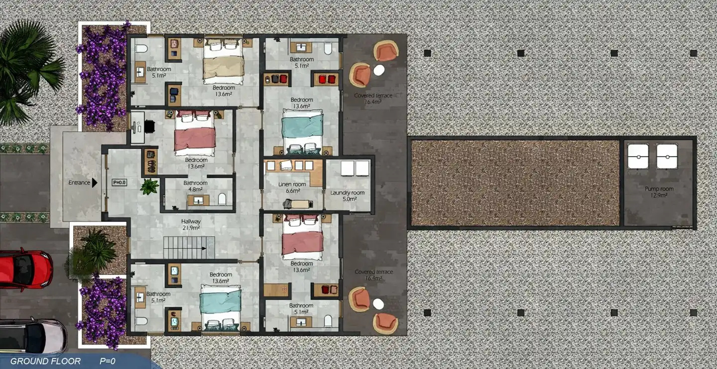 Si la villa est occupée ; Notre autre villa de luxe, également située à Vista Royal, sera prête à partir de juillet 2024. Cette villa, qui dispose de 8 chambres et 8 salles de bains, se trouve sous le numéro 45221 à Micazu.