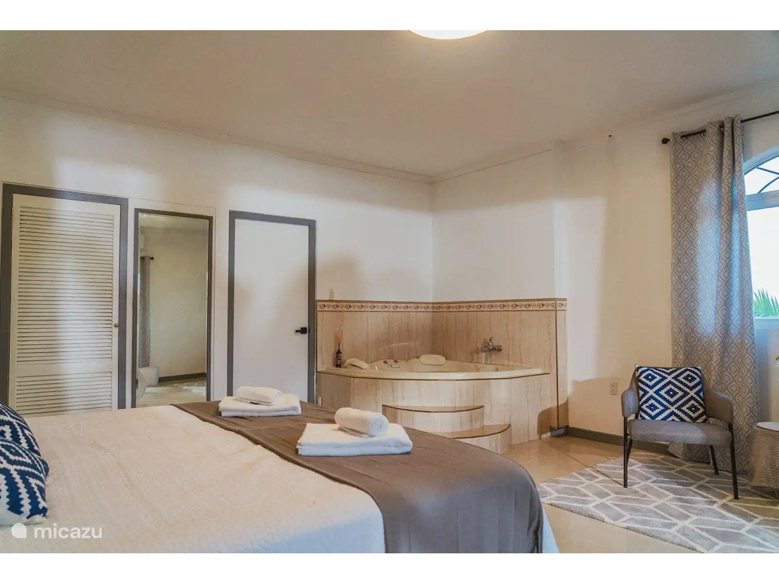 Montez d’un niveau et découvrez trois autres chambres décorées avec goût, ainsi que la luxueuse chambre principale. Chaque chambre est équipée de sa propre télévision pour plus de confort. La chambre principale offre une expérience unique avec un jacuzzi dans la chambre et un coin salon avec une vue imprenable sur la charmante Curaçao.