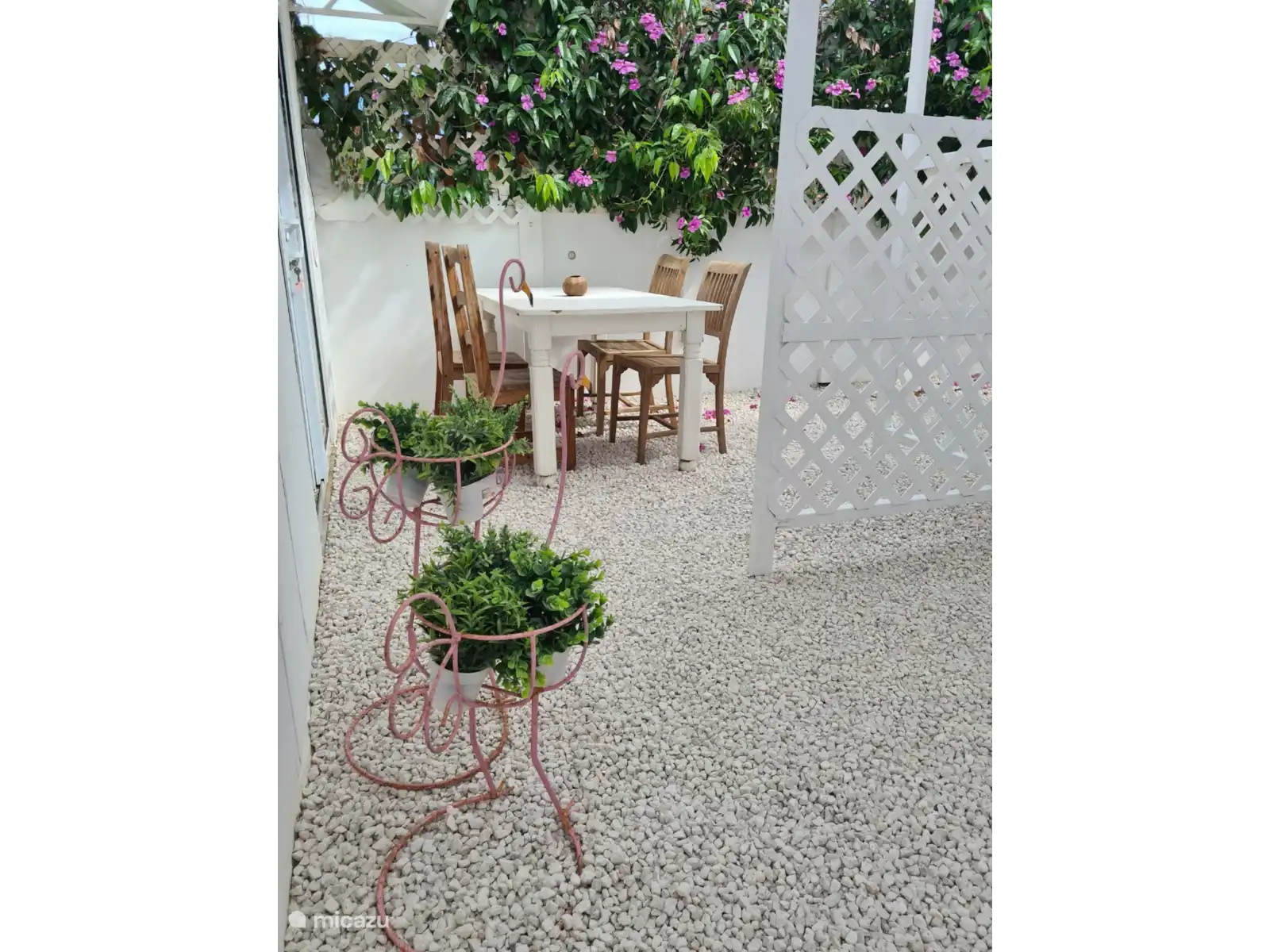 Nous sommes heureux de partager avec vous nos beaux appartements Tortuga et Flamingo, situés au centre d’un petit paradis à Jongbloed, derrière notre maison. D’une allée privée, vous entrez dans une oasis de paix. Le jardin avec piscine (réservé aux clients) est situé au milieu et est accessible depuis les appartements avec leur propre entrée. Ici, vous trouverez l’attention personnelle et l’implication des clients, comme dans un B&B, mais l’intimité comme dans un mini-resort. Le beurre et l’argent du beurre.