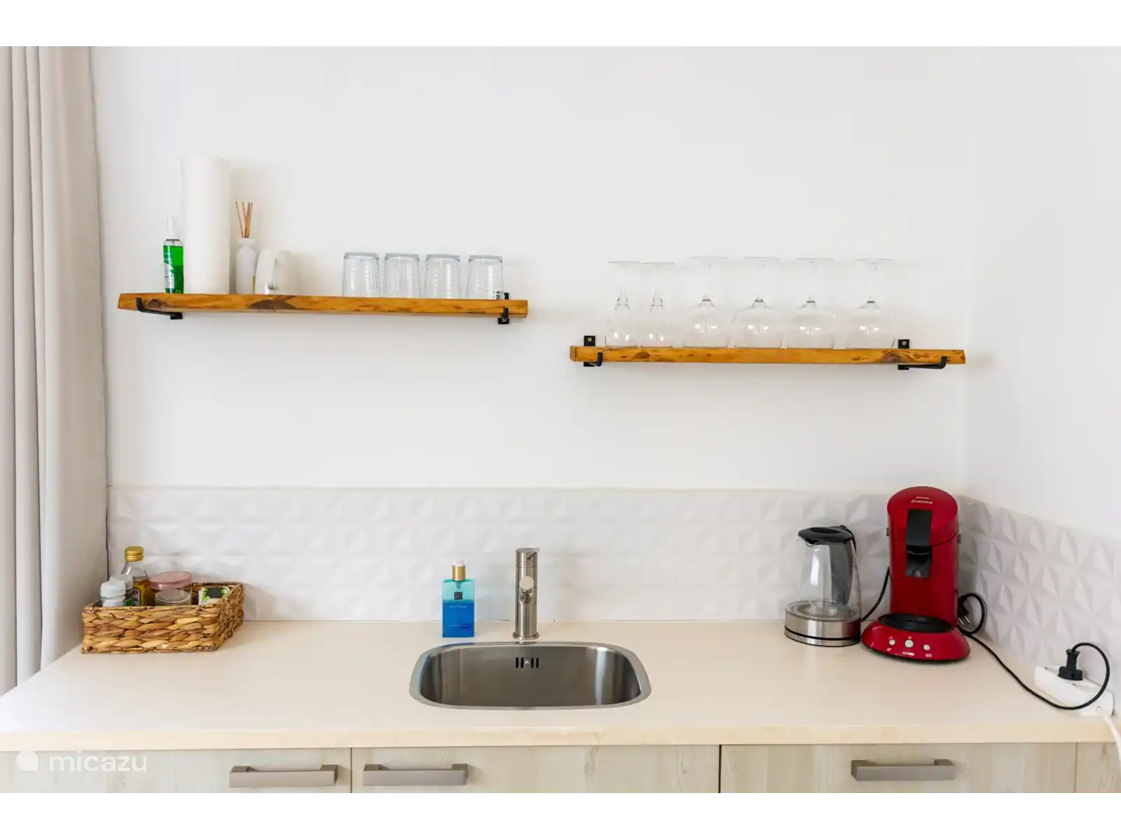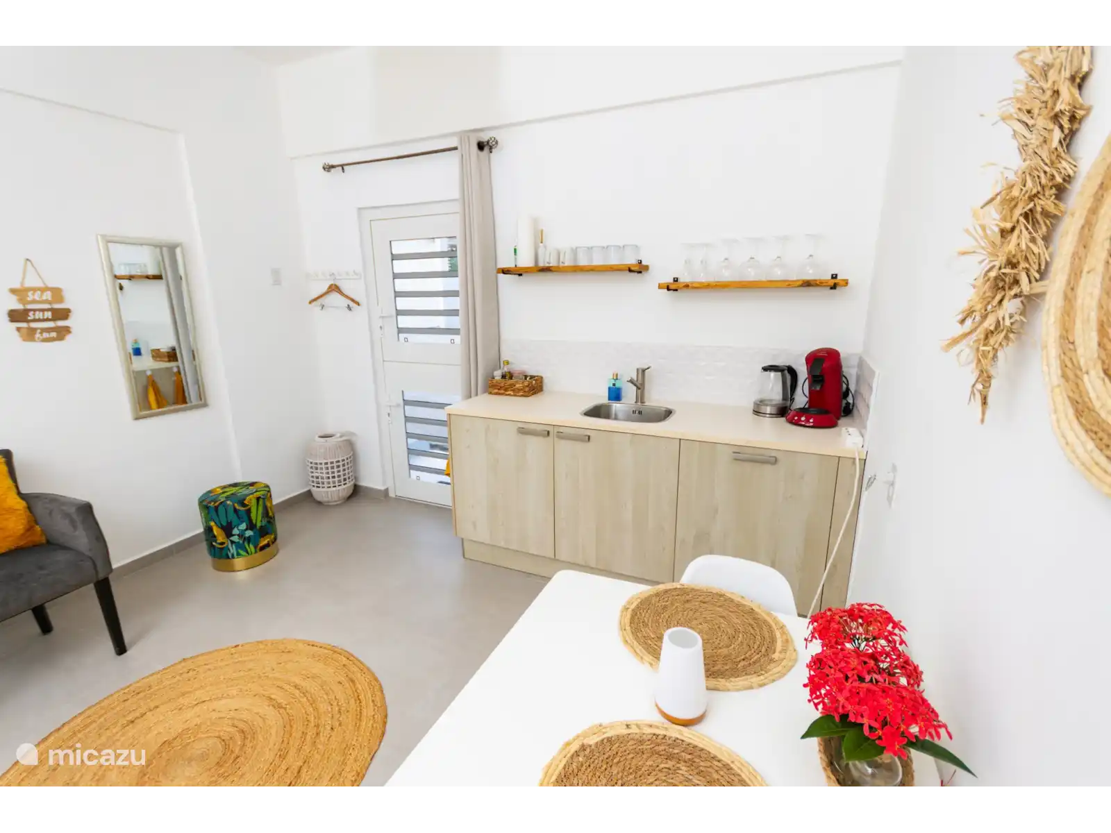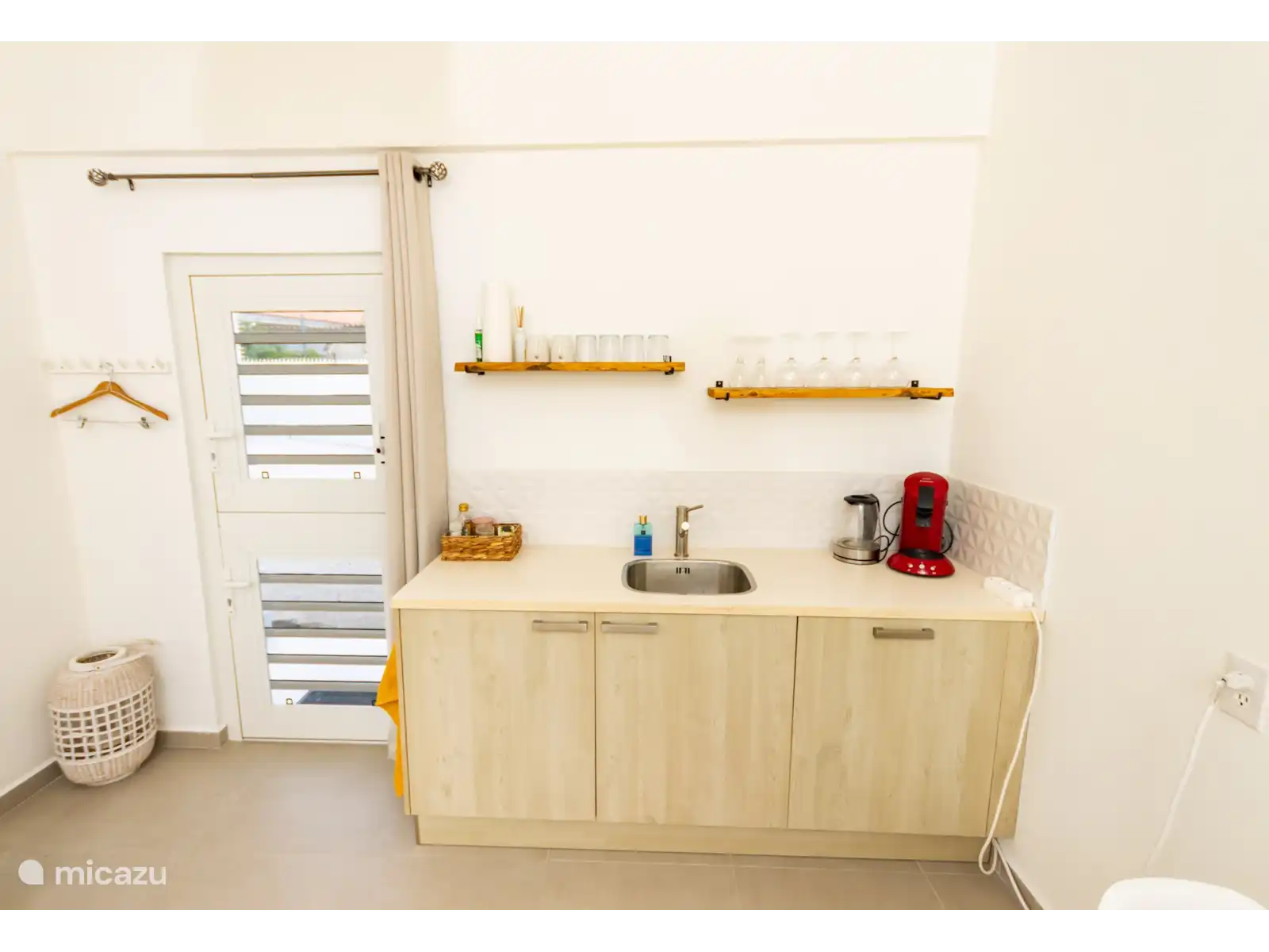 La kitchenette est équipée d’une machine à café, d’une bouilloire et d’un réfrigérateur. Pour une bonne nuit de sommeil, le studio est équipé de la climatisation, afin que vous puissiez échapper à la chaleur tropicale de Curaçao.