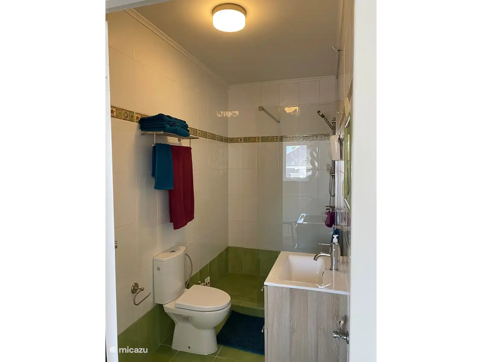Entre les deux chambres se trouve la salle de bain avec eau chaude.