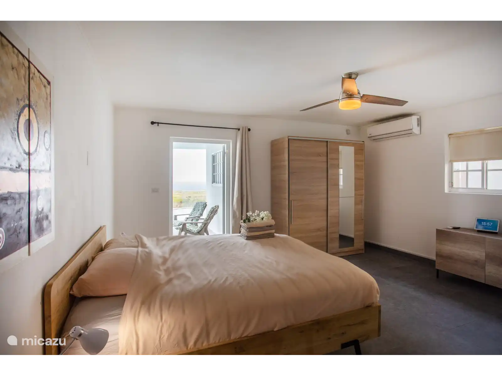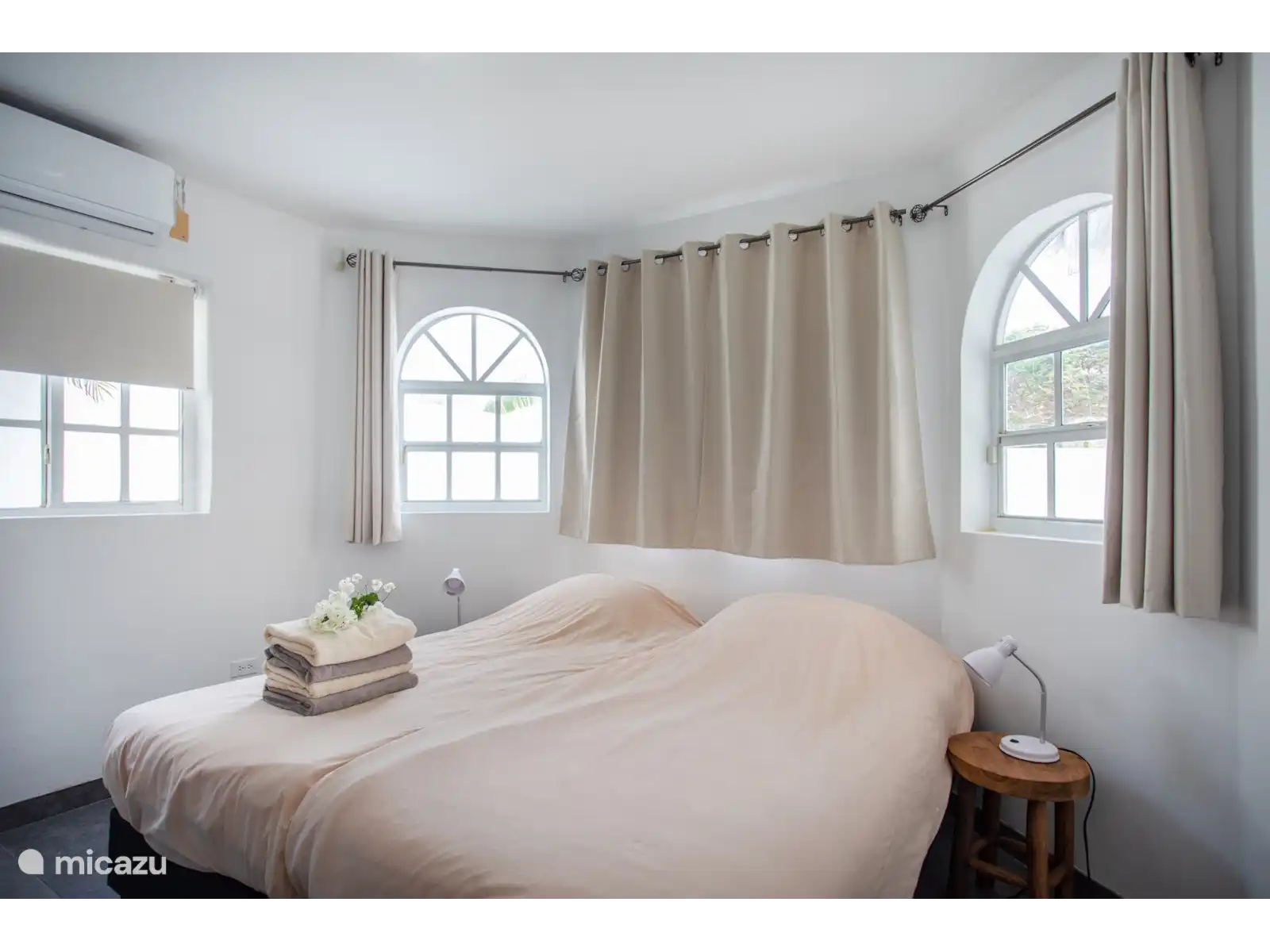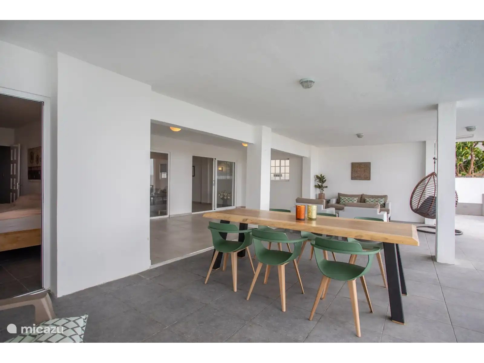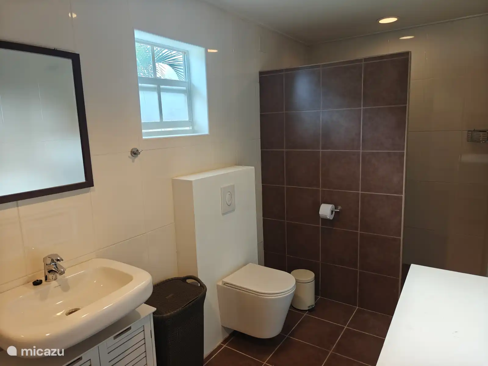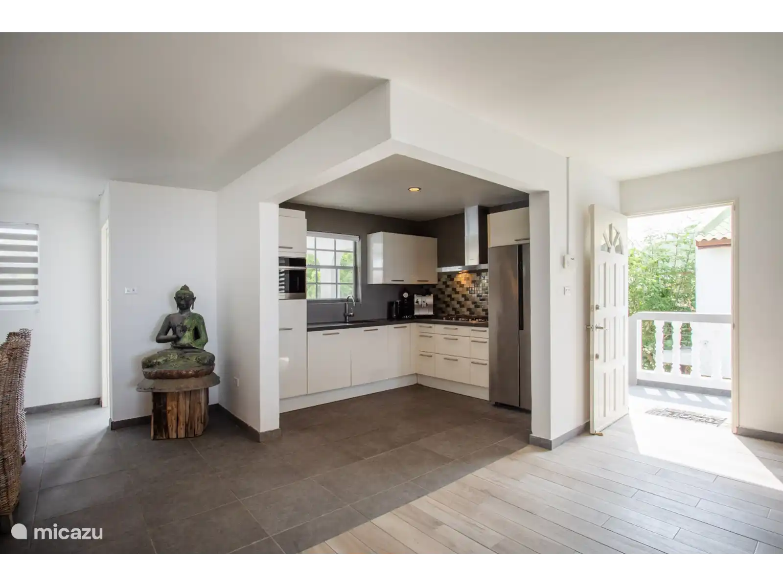 L’entrée principale se trouve au rez-de-chaussée avec une cuisine et un salon spacieux. Le téléviseur intelligent de 65 pouces dispose de différents services de streaming prêts à l’emploi tels que Netflix, Amazon Prime et Videoland. Les mélomanes peuvent écouter Spotify via le Nest Hub Max. De plus, il y a 3 chambres climatisées et 2 salles de bains au rez-de-chaussée. Le salon dispose également de la climatisation. La chambre principale dispose d’un lit double et les deux autres chambres ont toutes deux 2 lits simples.