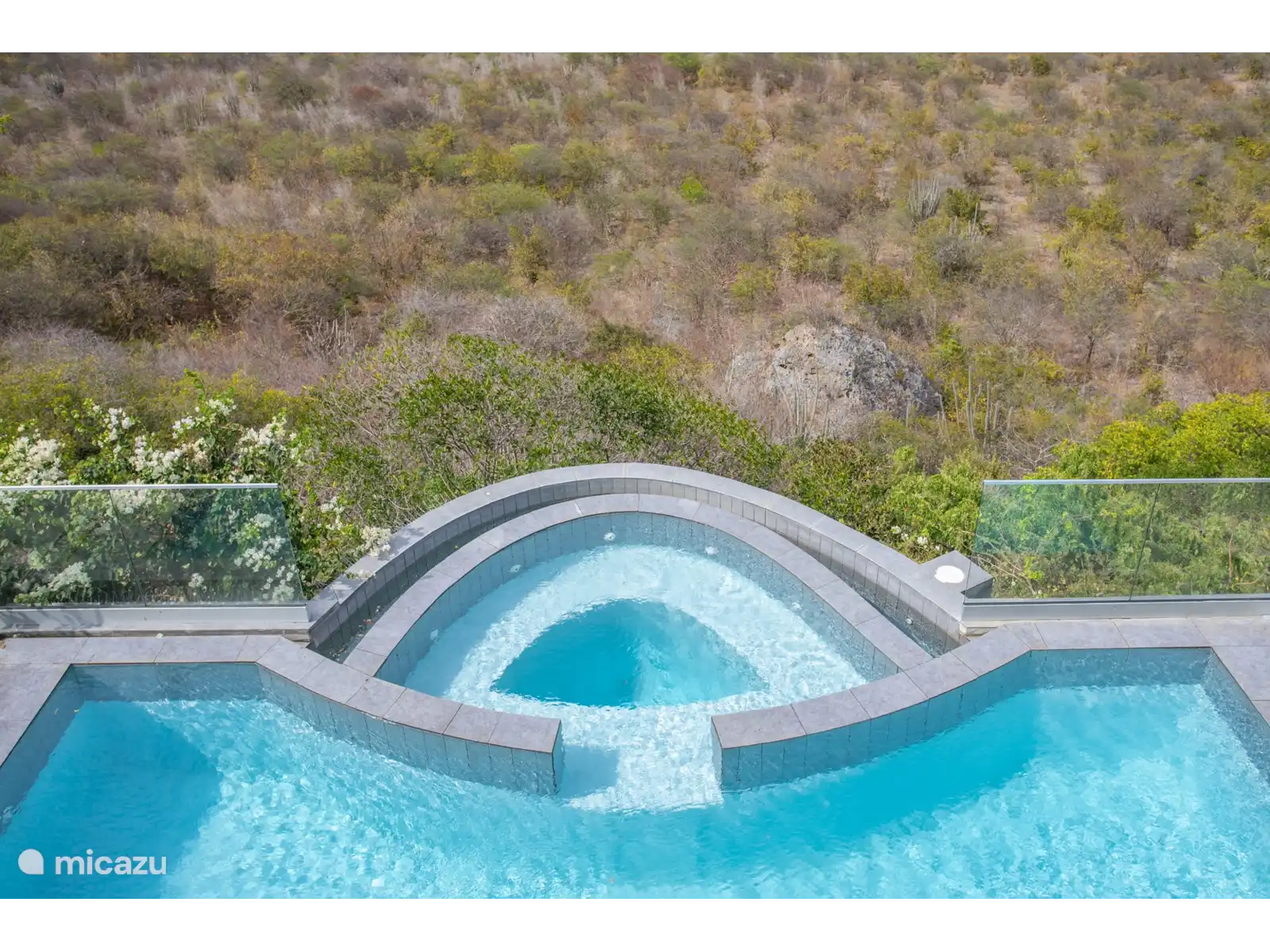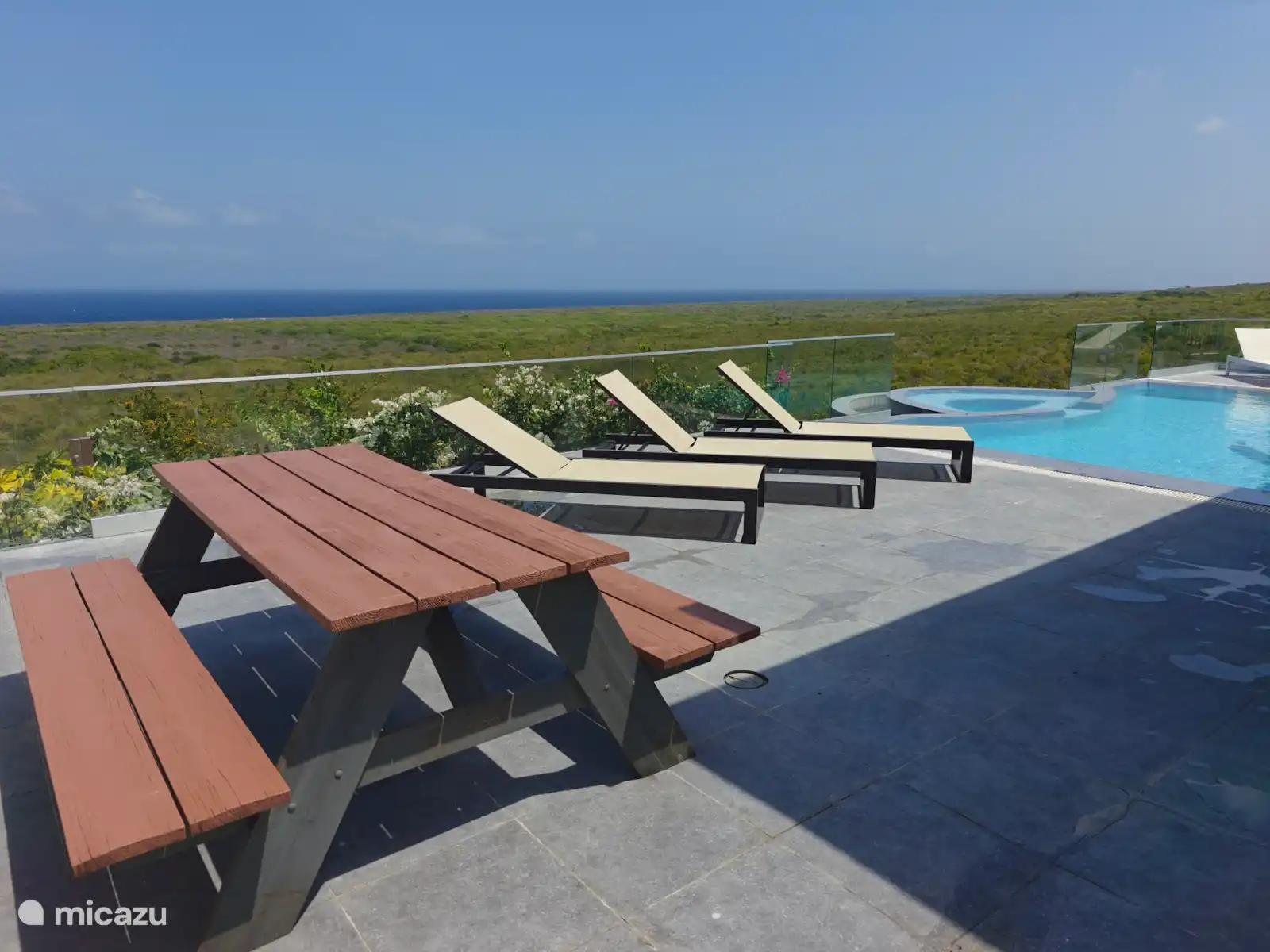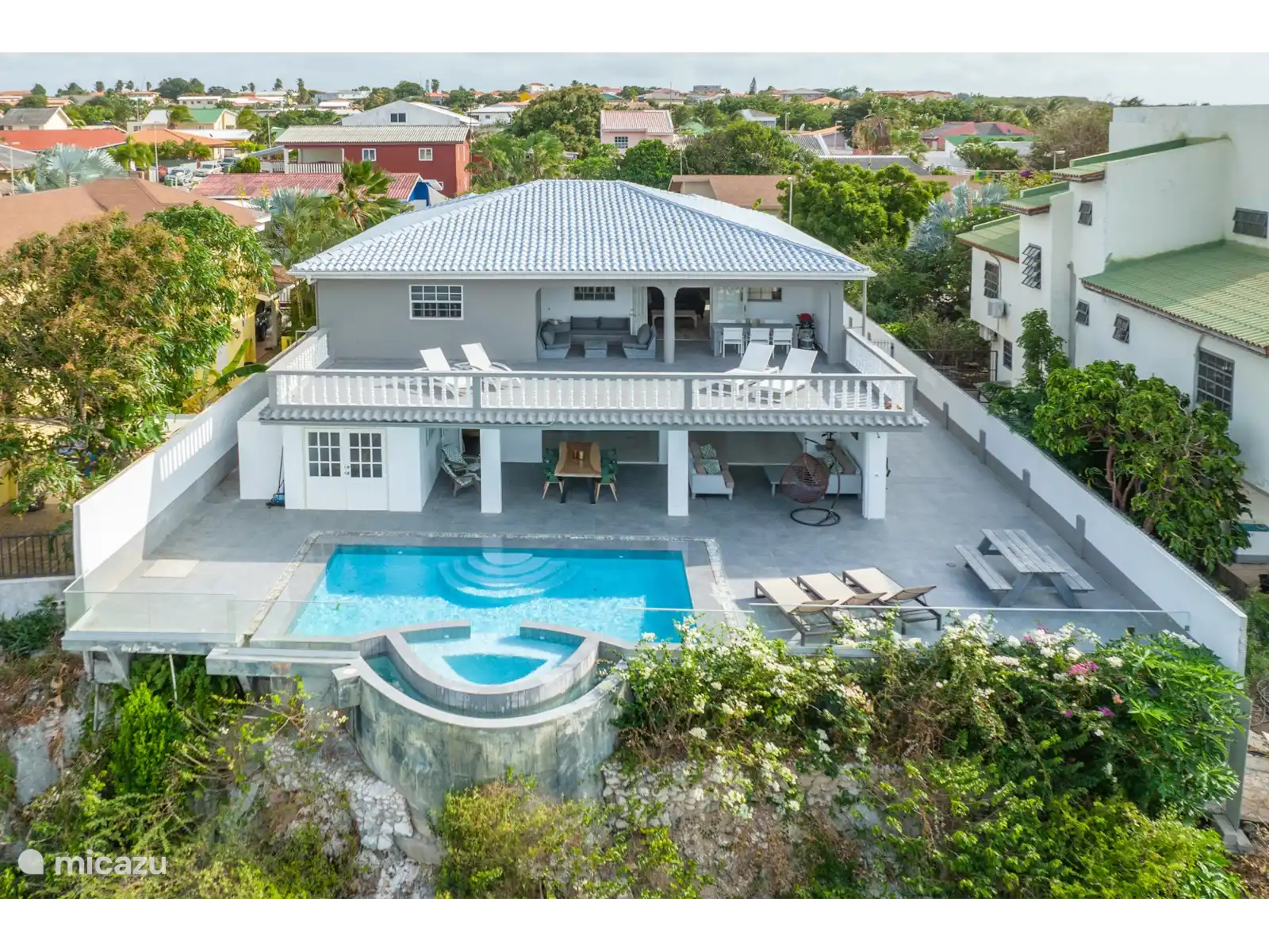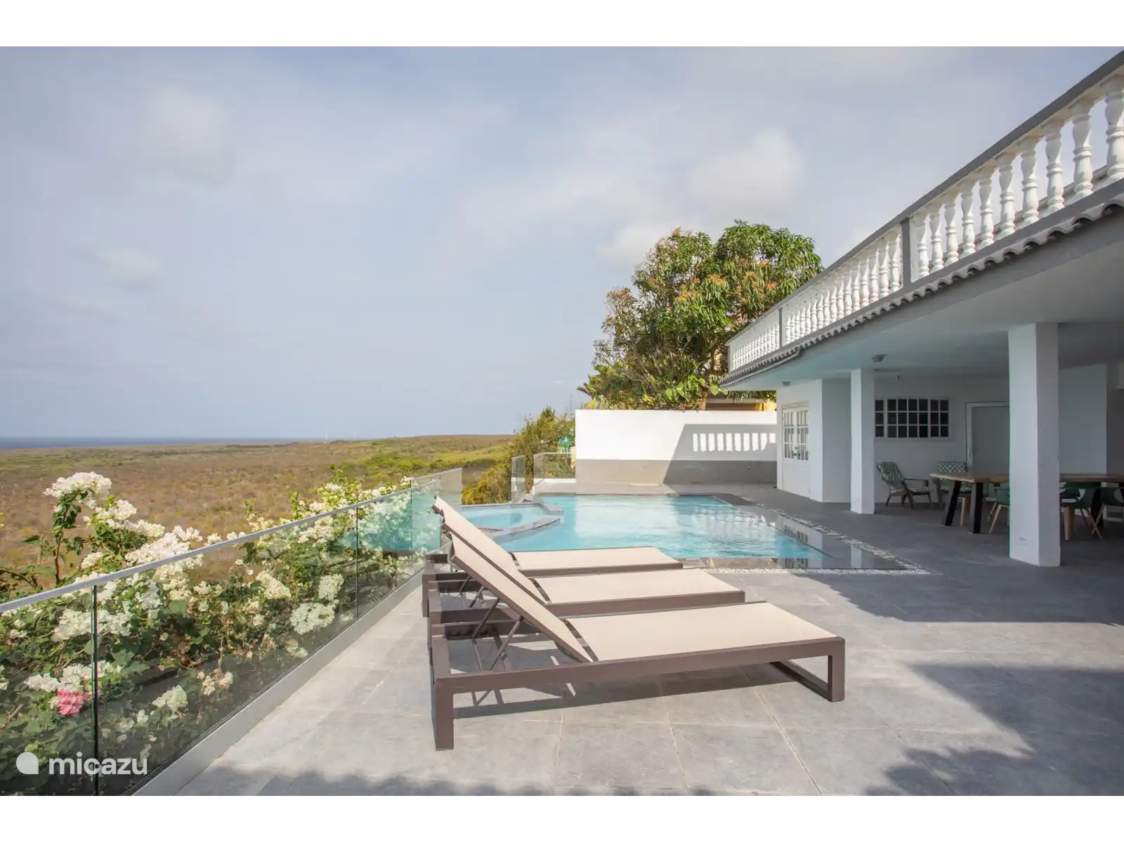 Cette charmante villa offre une vue panoramique imprenable sur l’océan agité et la réserve naturelle, ce qui en fait une expérience unique. C’est particulièrement époustouflant depuis la piscine à débordement. La terrasse spacieuse offre beaucoup d’ombre pour les moments où vous voulez échapper aux rayons du soleil. La villa est située sur le côté nord de l’île et en voiture, vous pouvez rejoindre la plage de Mambo ou le centre en 15 minutes. Bref, un endroit fantastique pour profiter pleinement de vos vacances.