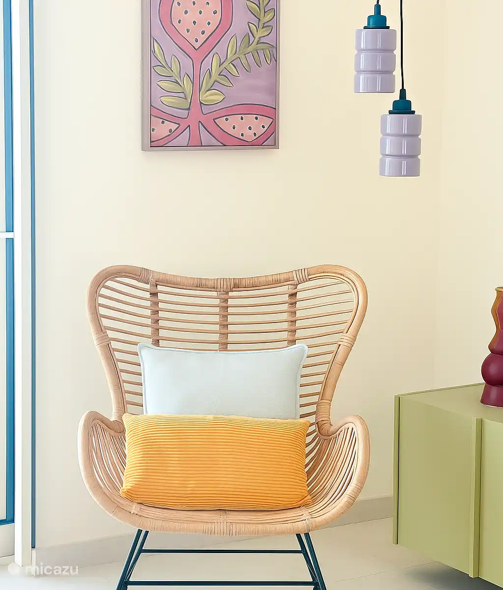 La piscine se trouve à quelques pas de la suite. Le bâtiment a été reconstruit en 2025 et ne compte que cinq appartements. Le jardin est vert et luxuriant, avec des palmiers et de magnifiques plantations. Le bâtiment avec piscine offre un charme boutique de vacances qui vous fera vous sentir comme chez vous.