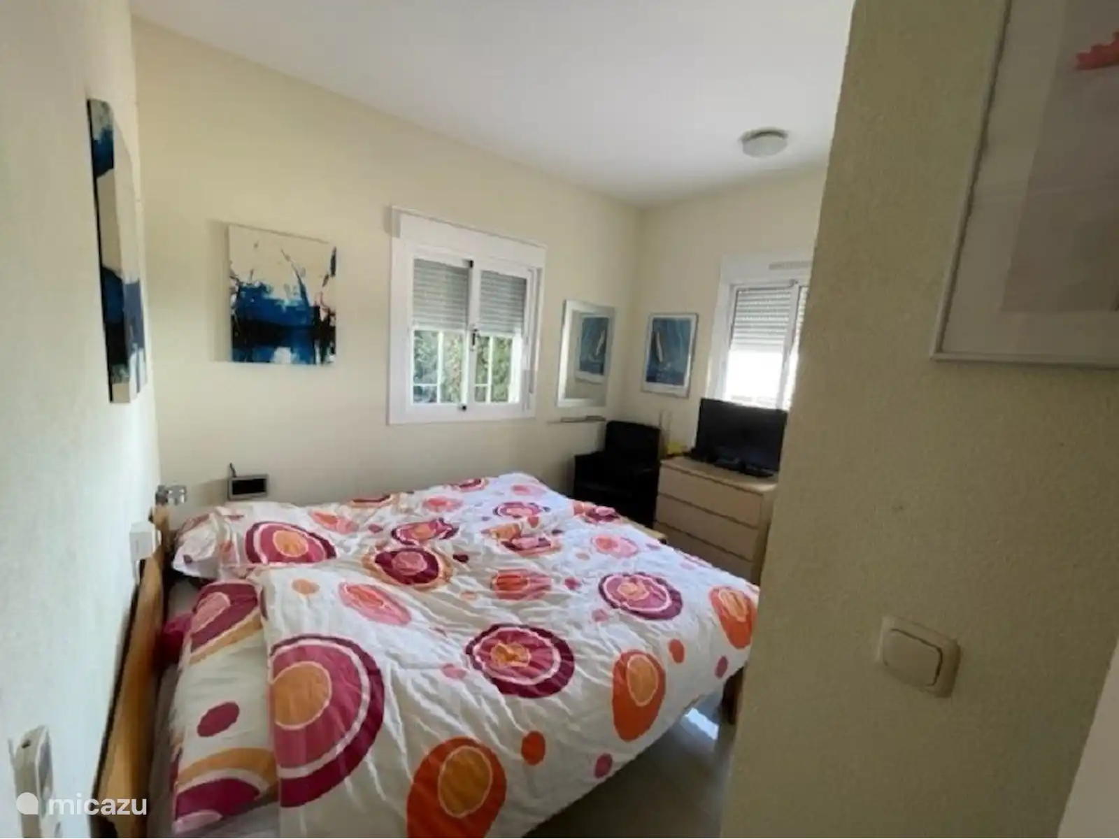 Une fois dans l'allée et devant la porte d'entrée, vous entrez dans le couloir avec 1 à droite et 2 chambres à gauche et une salle de bains. Si vous passez devant la cuisine, vous entrez immédiatement dans le salon où se trouve la porte coulissante donnant sur les 2 terrasses. À gauche se trouve la piscine et les escaliers menant à un jardin en contrebas, à droite de la terrasse se trouve le barbecue. Bref, du calme, de l'espace, du confort et de belles vues !