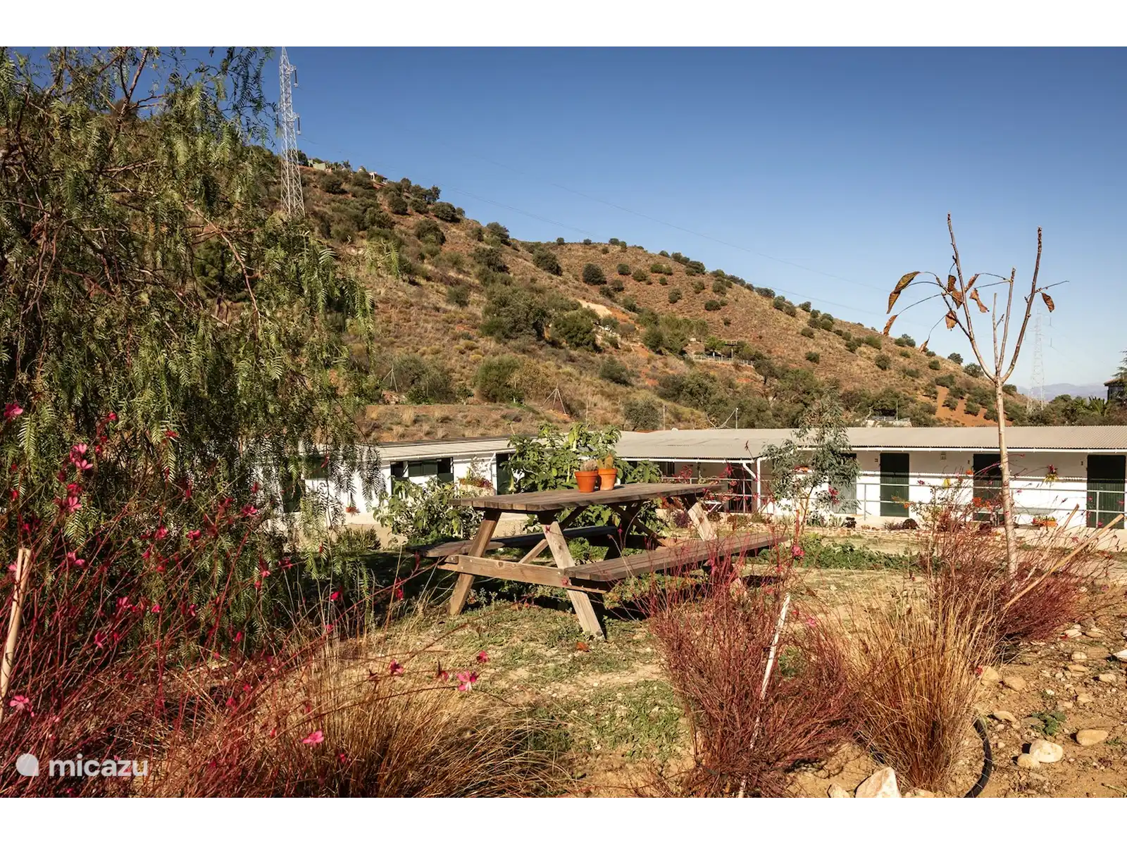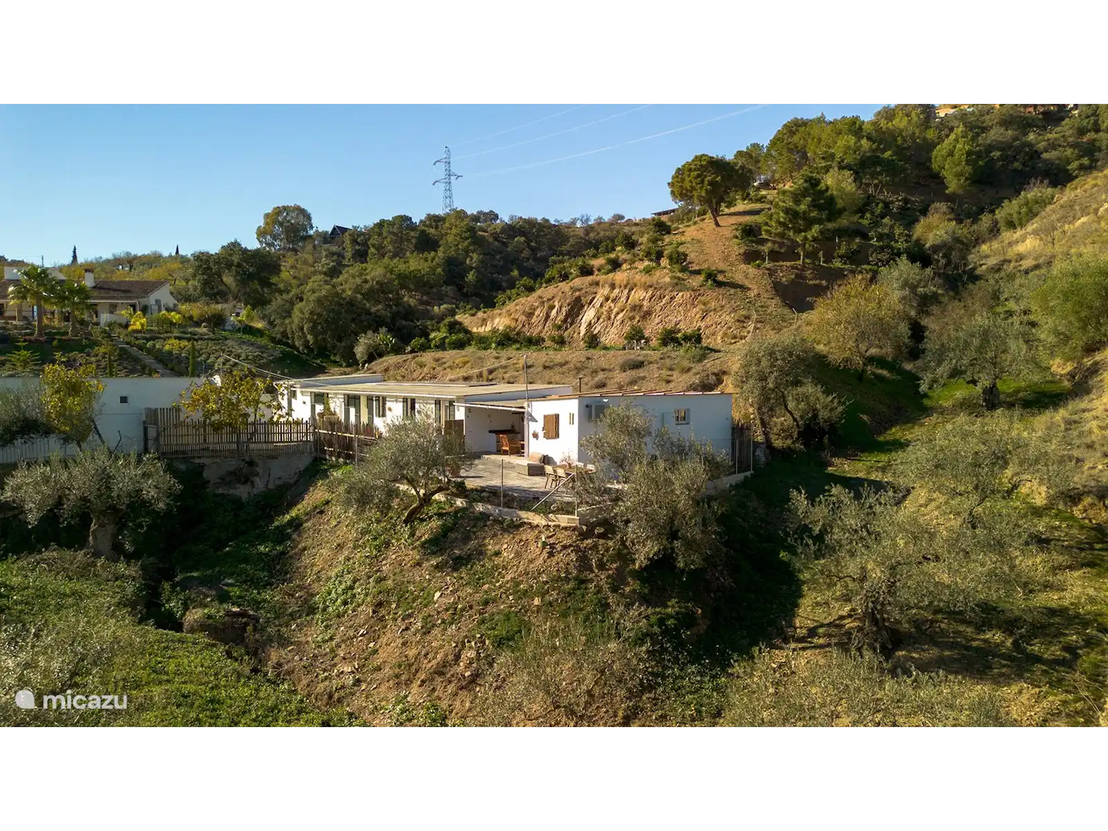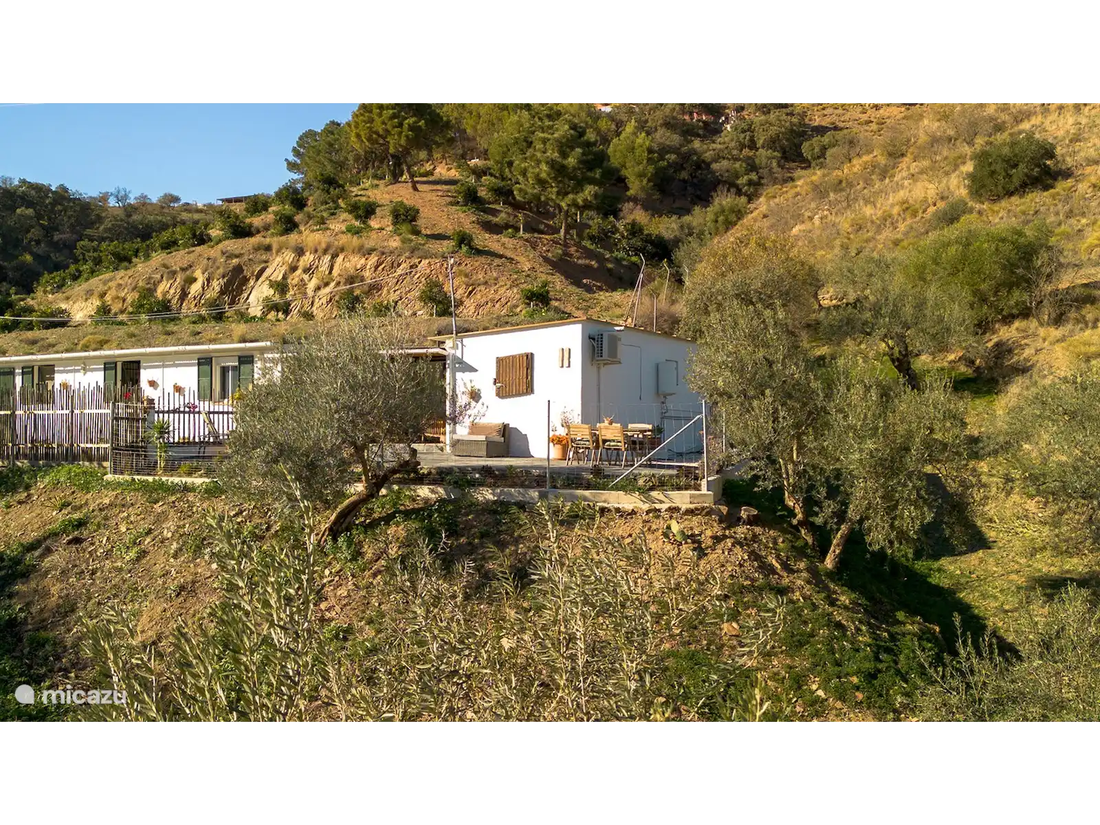 Imaginez-vous dans un authentique cottage espagnol entièrement équipé. Par exemple, il y a une douche extérieure rafraîchissante à l’extérieur pour les journées chaudes, car ce chalet n’a pas de piscine. L’intérieur a beaucoup d’influences espagnoles. Sur la propriété, il y a 2 ânes, 3 chiens, des chats, des poules, des cailles et des oiseaux.