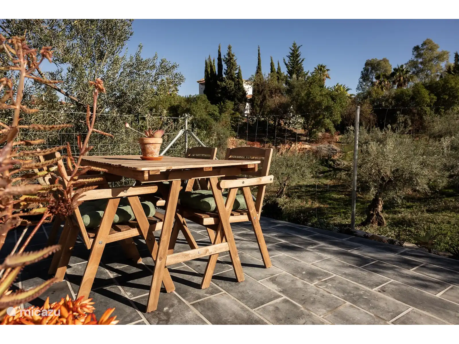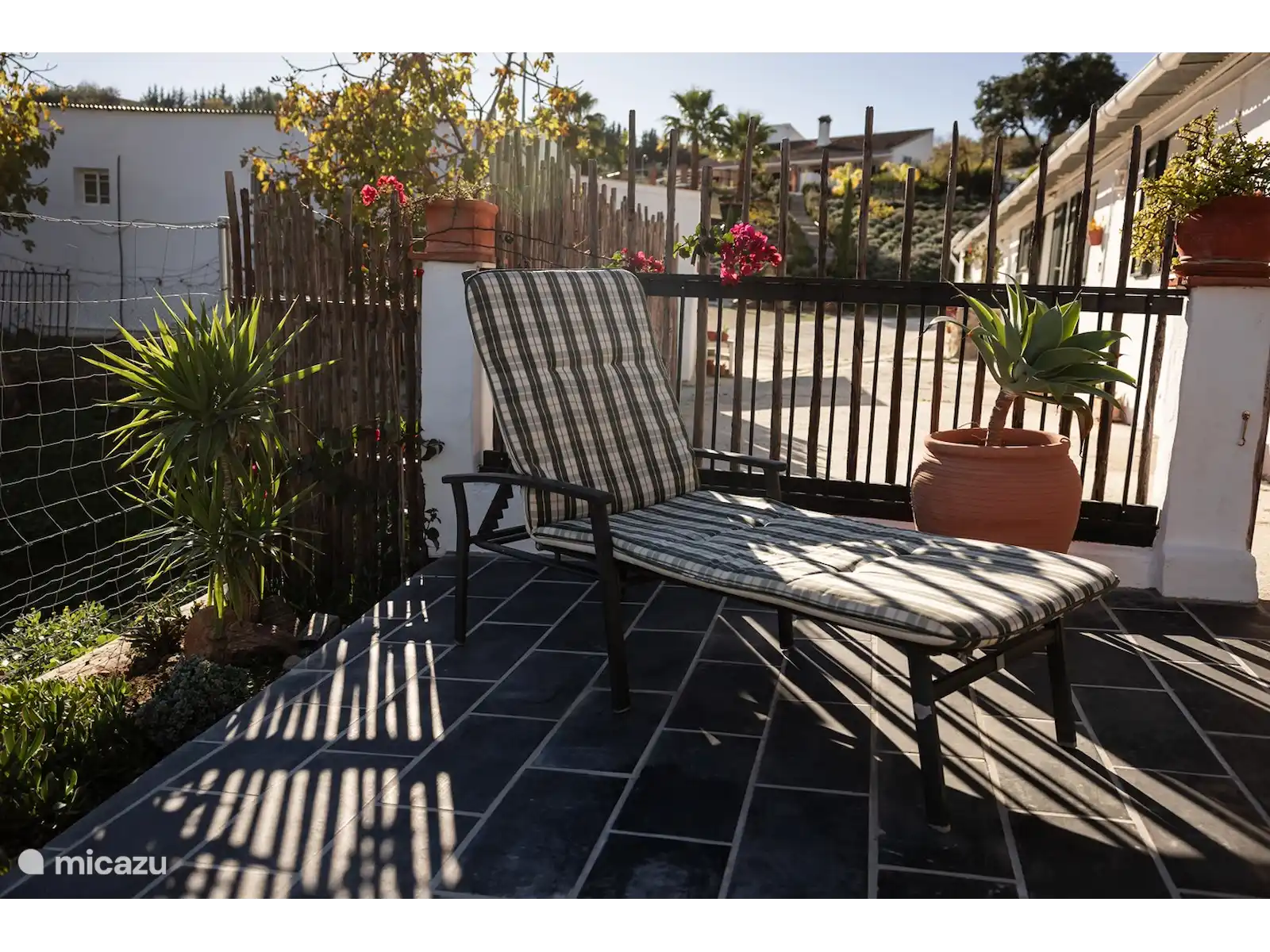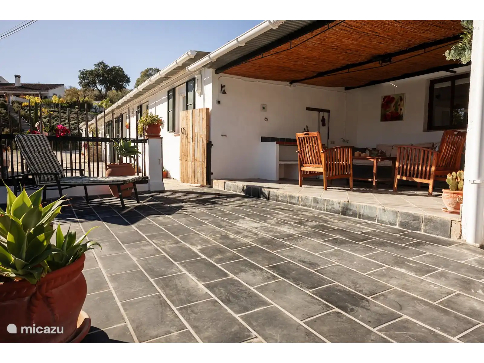 Imaginez-vous dans un authentique cottage espagnol entièrement équipé. Par exemple, il y a une douche extérieure rafraîchissante à l’extérieur pour les journées chaudes, car ce chalet n’a pas de piscine. L’intérieur a beaucoup d’influences espagnoles. Sur la propriété, il y a 2 ânes, 3 chiens, des chats, des poules, des cailles et des oiseaux.