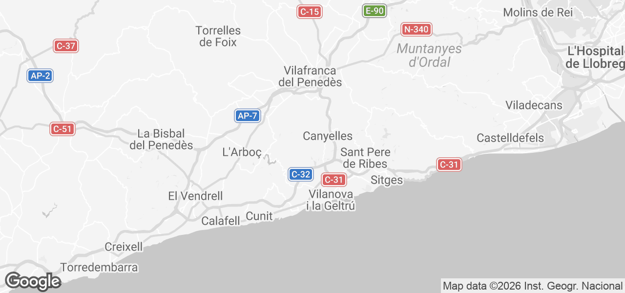 Barcelone à 30 minutes par autoroute et la route côtière en 50 minutes. L’autre trajet vers Tarragone est à 50 minutes.