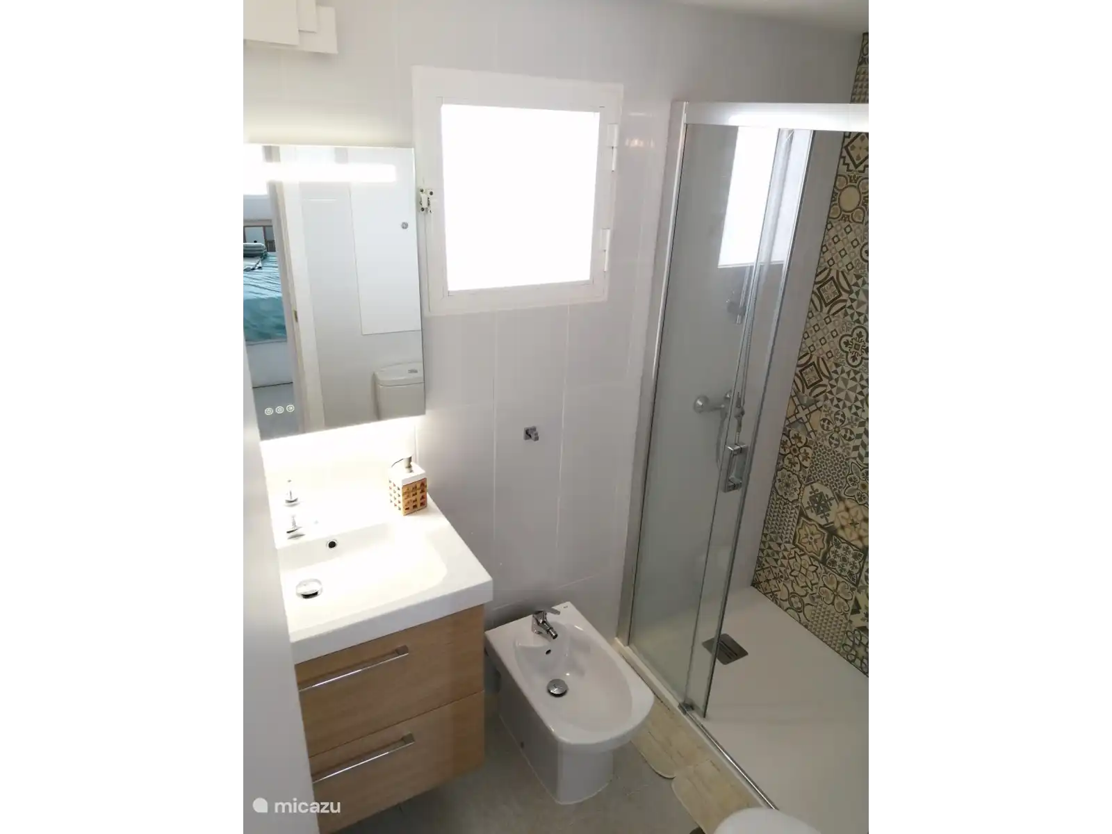 L'appartement se compose d'un séjour avec cuisine ouverte, d'un coin repas avec une terrasse vitrée donnant sur le jardin et la piscine commune. Dans la salle de bain, vous trouverez une douche à l'italienne spacieuse et un bidet.
