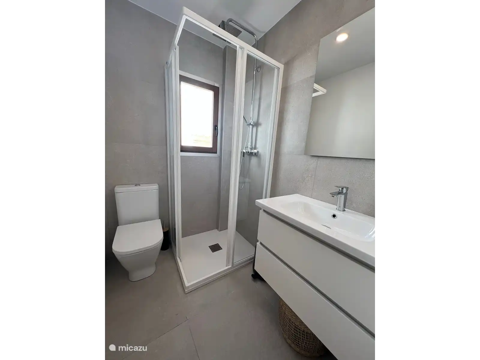 La deuxième chambre dispose d’un lit double confortable et d’une salle de bain séparée avec douche, lavabo et toilettes.