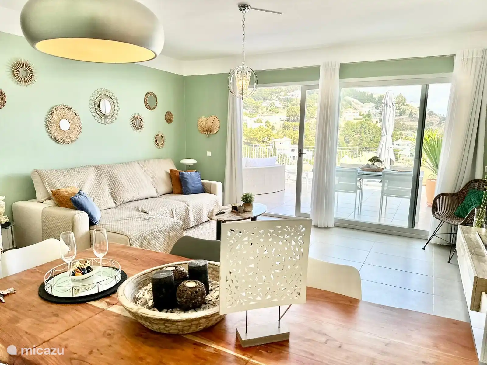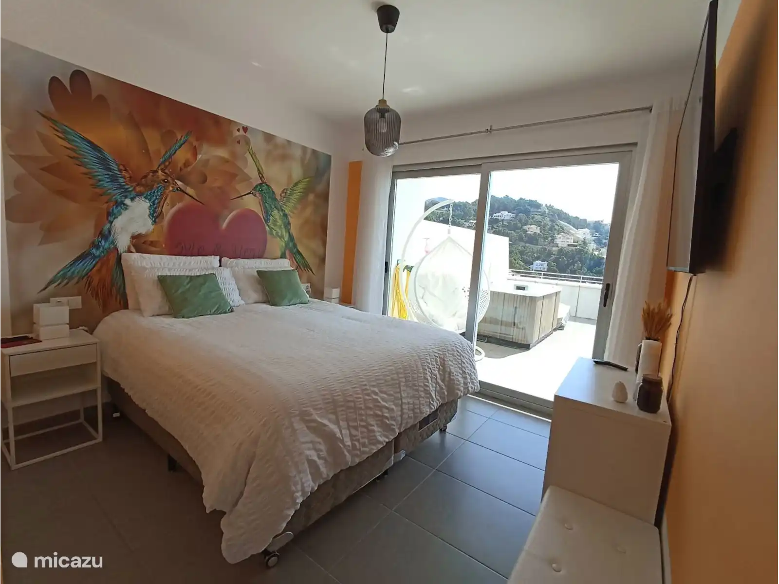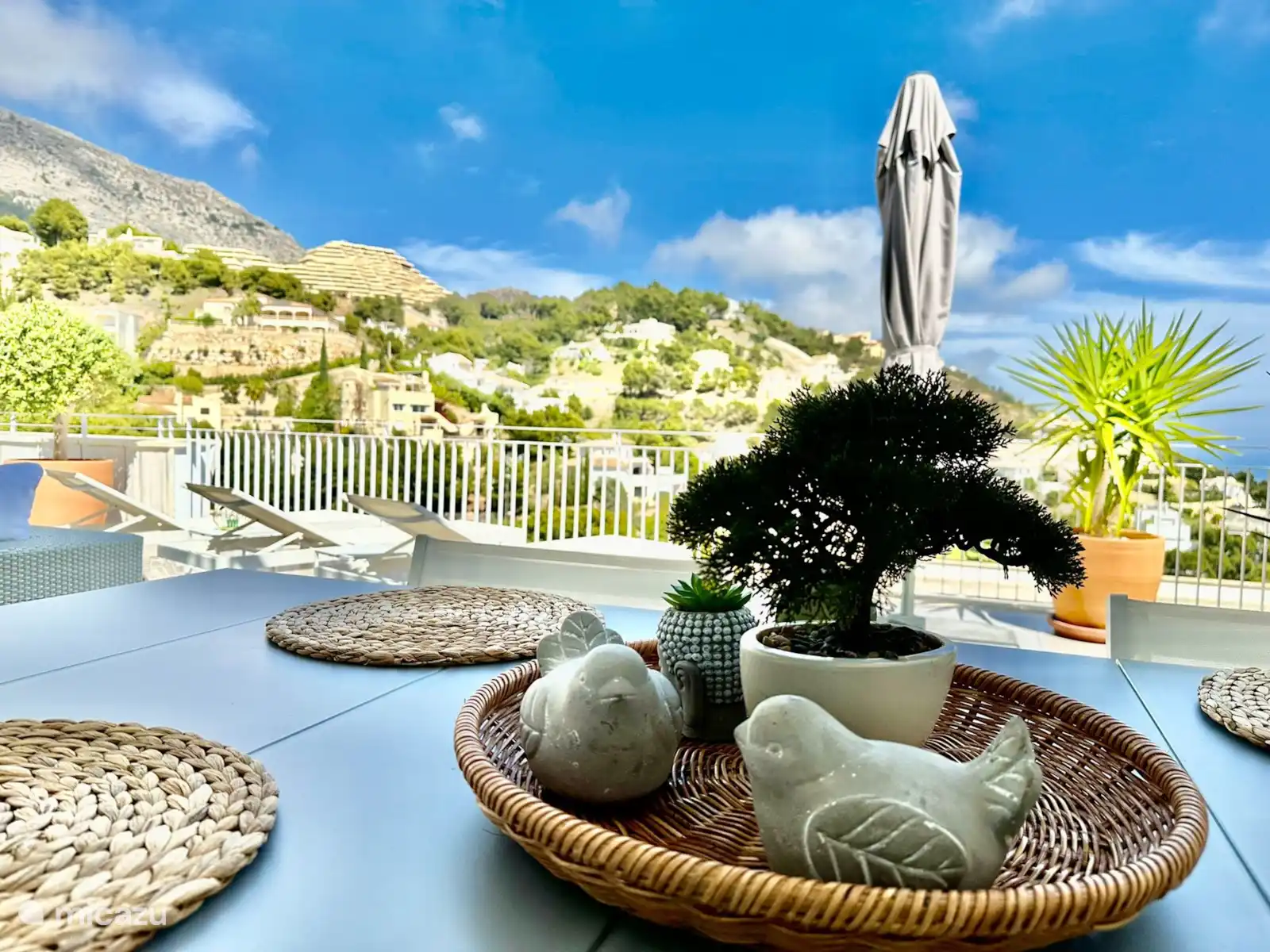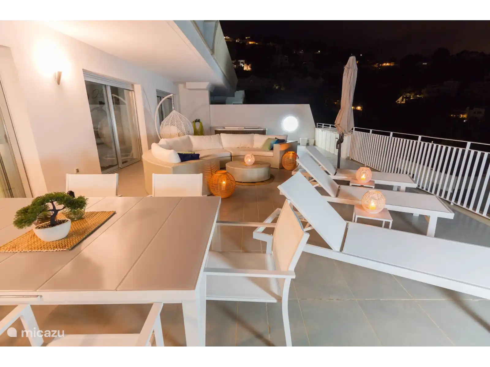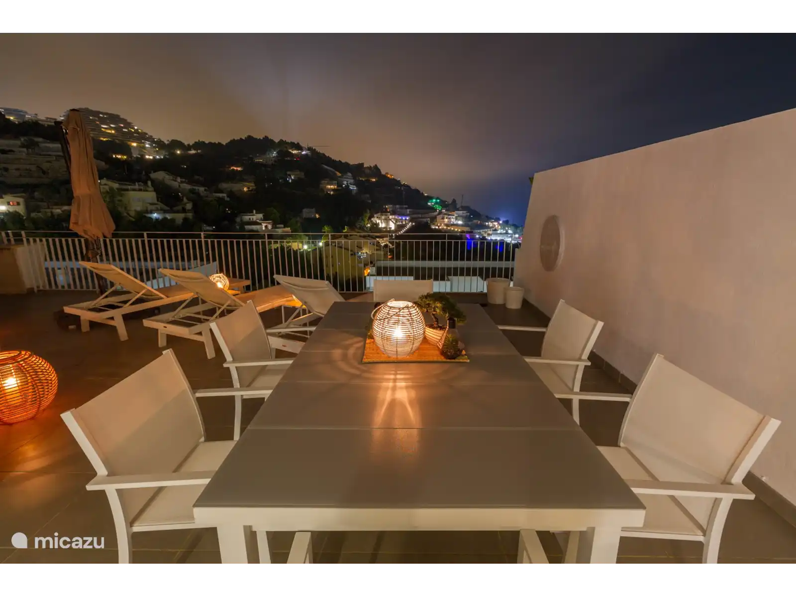 • Terrasse : espace de détente, chaises longues, jacuzzi et table à manger pour 10 personnes avec une vue imprenable sur la baie d’Altea et les collines de Bernia.