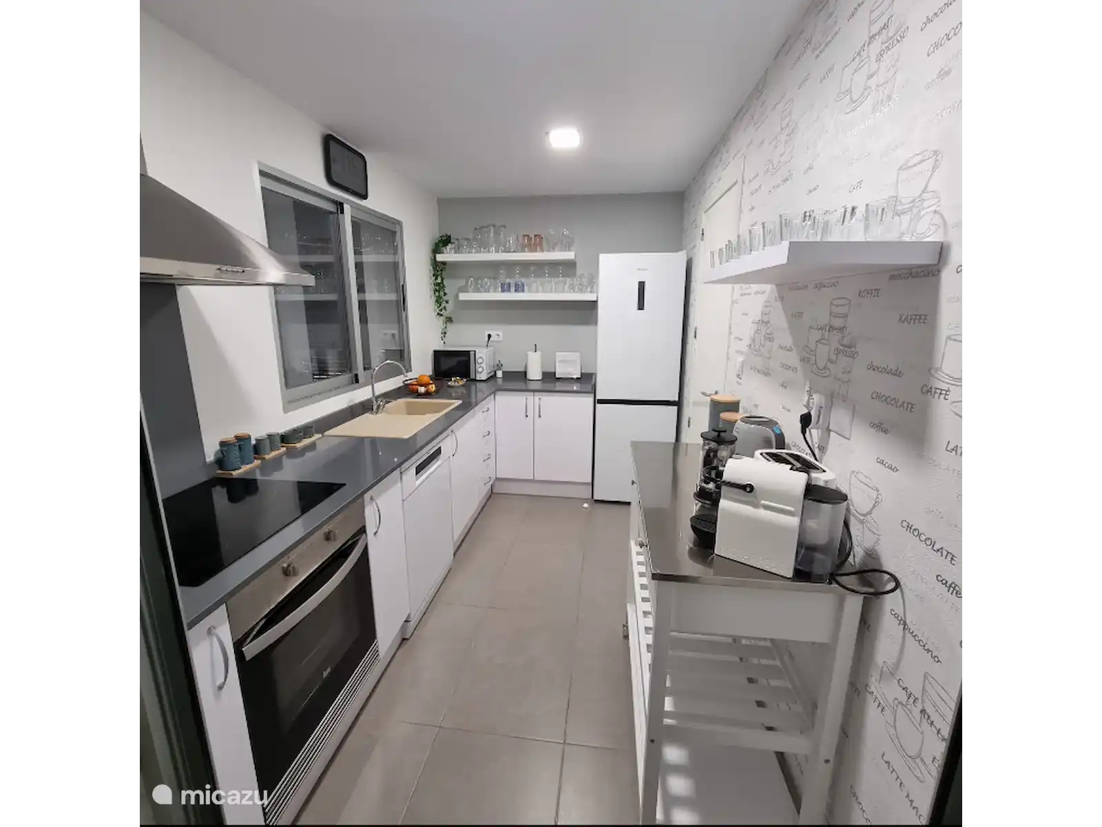 Grande cuisine entièrement équipée où vous trouverez un grille-pain, une bouilloire, une machine à café Nespresso et un micro-ondes.