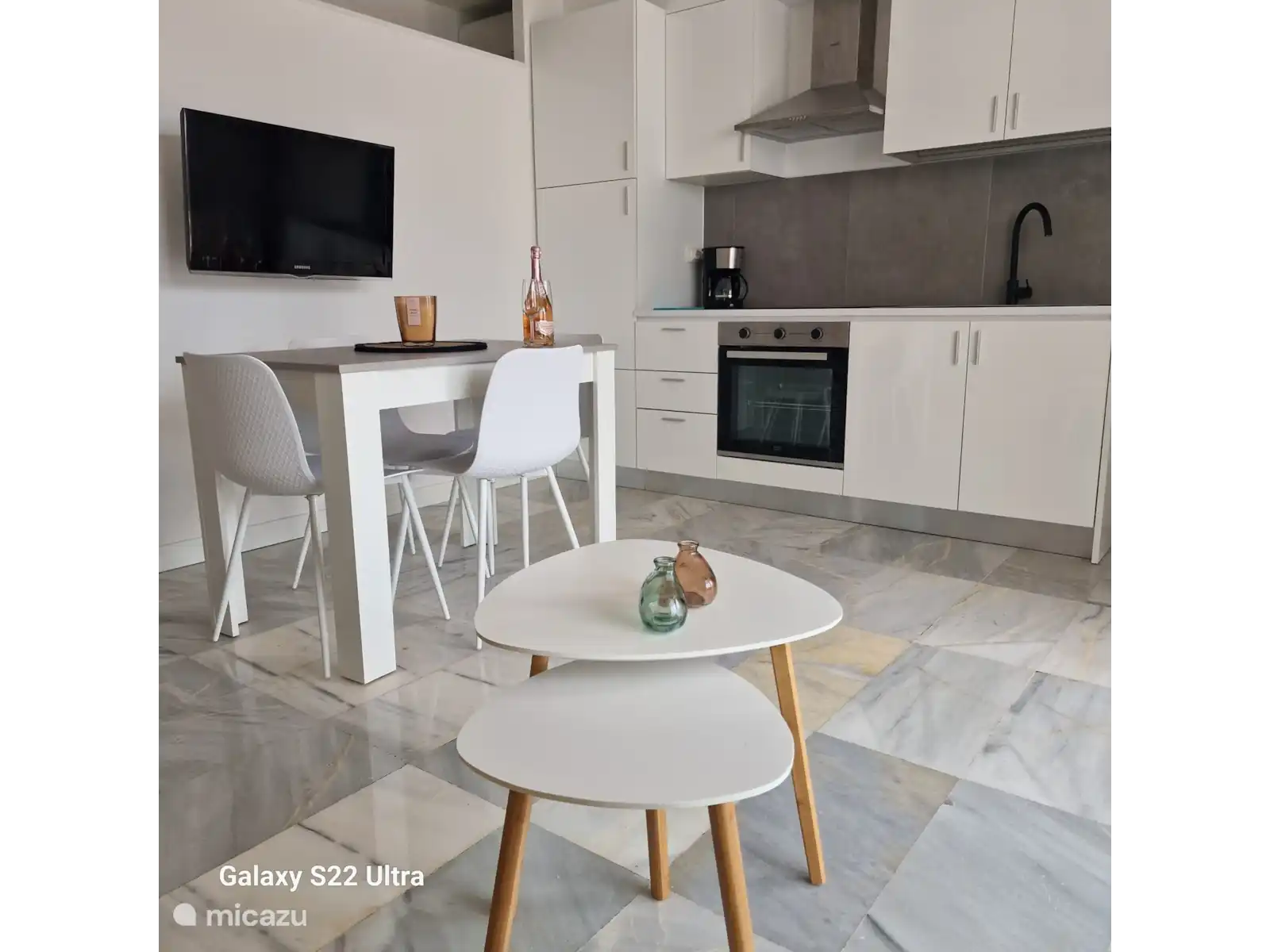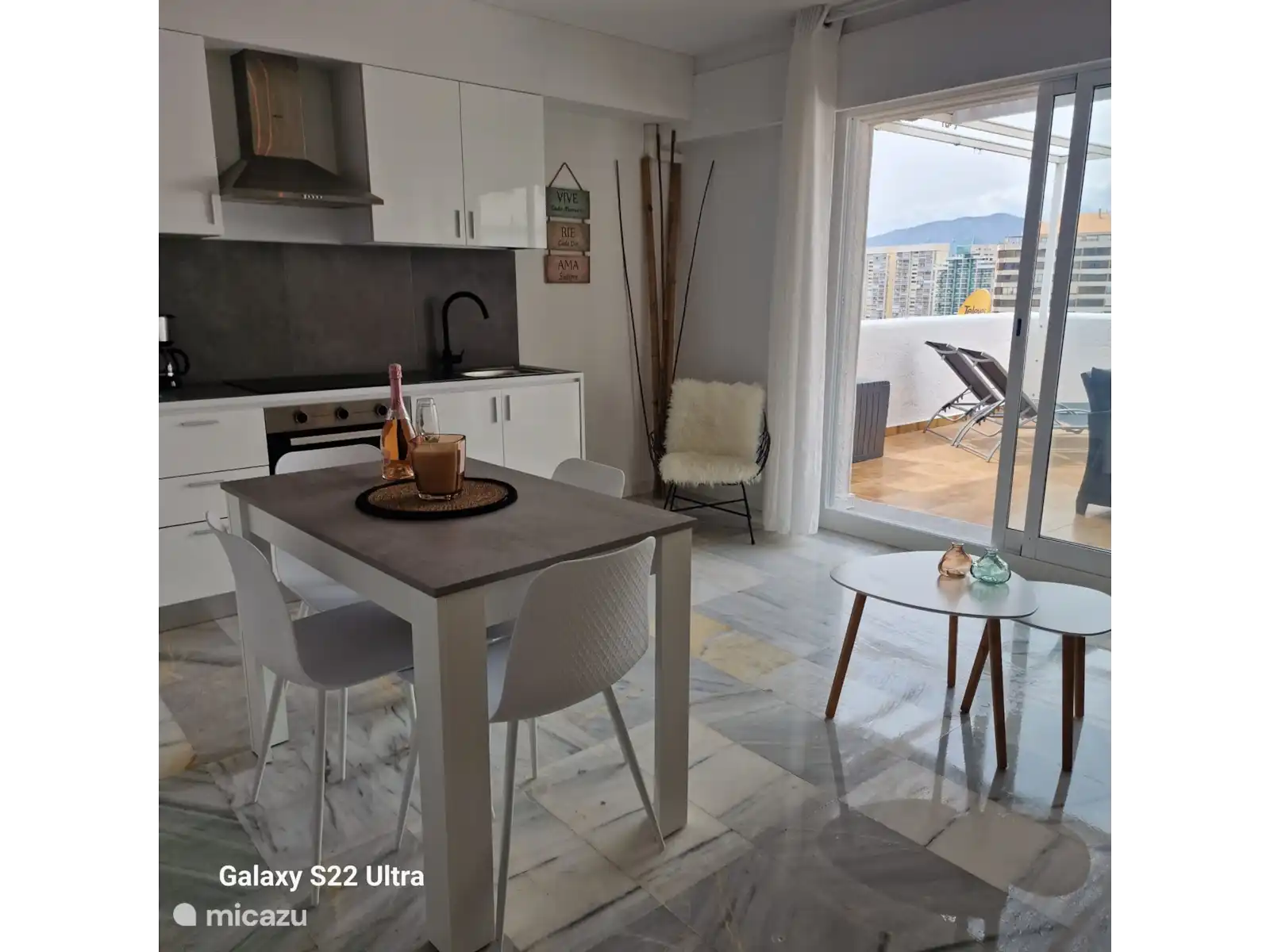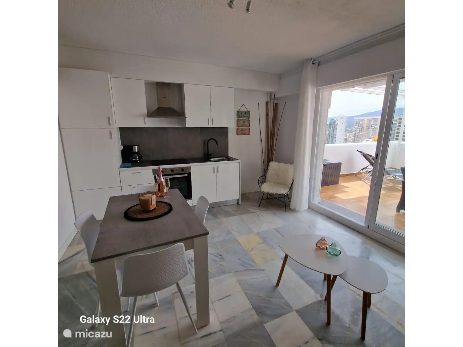 Bel appartement 1 chambre, tout neuf, confortablement meublé pour trois personnes. (lit king size dans la chambre, canapé-lit dans le salon) Vue magnifique sur les montagnes, la plage et la ville. Parking gratuit devant la porte. Piscine unique sur la mer. La grande terrasse qui attire l’attention est la grande terrasse où vous pourrez vous détendre.  Emplacement calme mais proche de la plage, des magasins, des restaurants. Nombreux sports nautiques, plusieurs golfs à proximité.