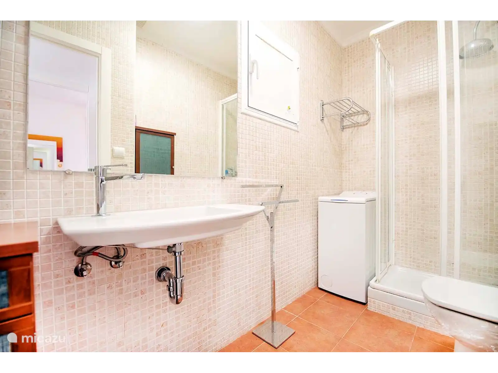 L’appartement bénéficie de beaucoup de soleil (orientation sud-ouest) et est facilement accessible (rez-de-chaussée, pas d’escaliers). L’appartement a une superficie construite de 30 m2 et se compose d’une chambre avec sommier, d’une salle de bain avec douche, évier, toilettes et machine à laver, d’un salon et d’une salle à manger avec cuisine (tous ouverts), ainsi qu’une grande terrasse de 25 m2 pour profiter d’une belle vue ouverte et d’une vue latérale sur la mer.