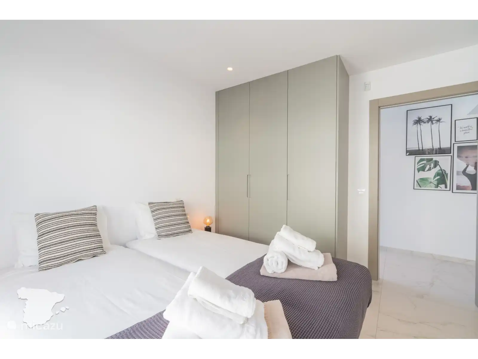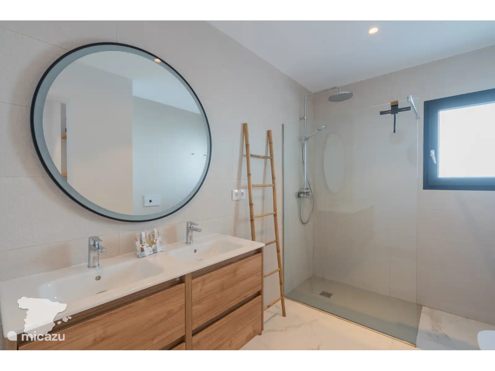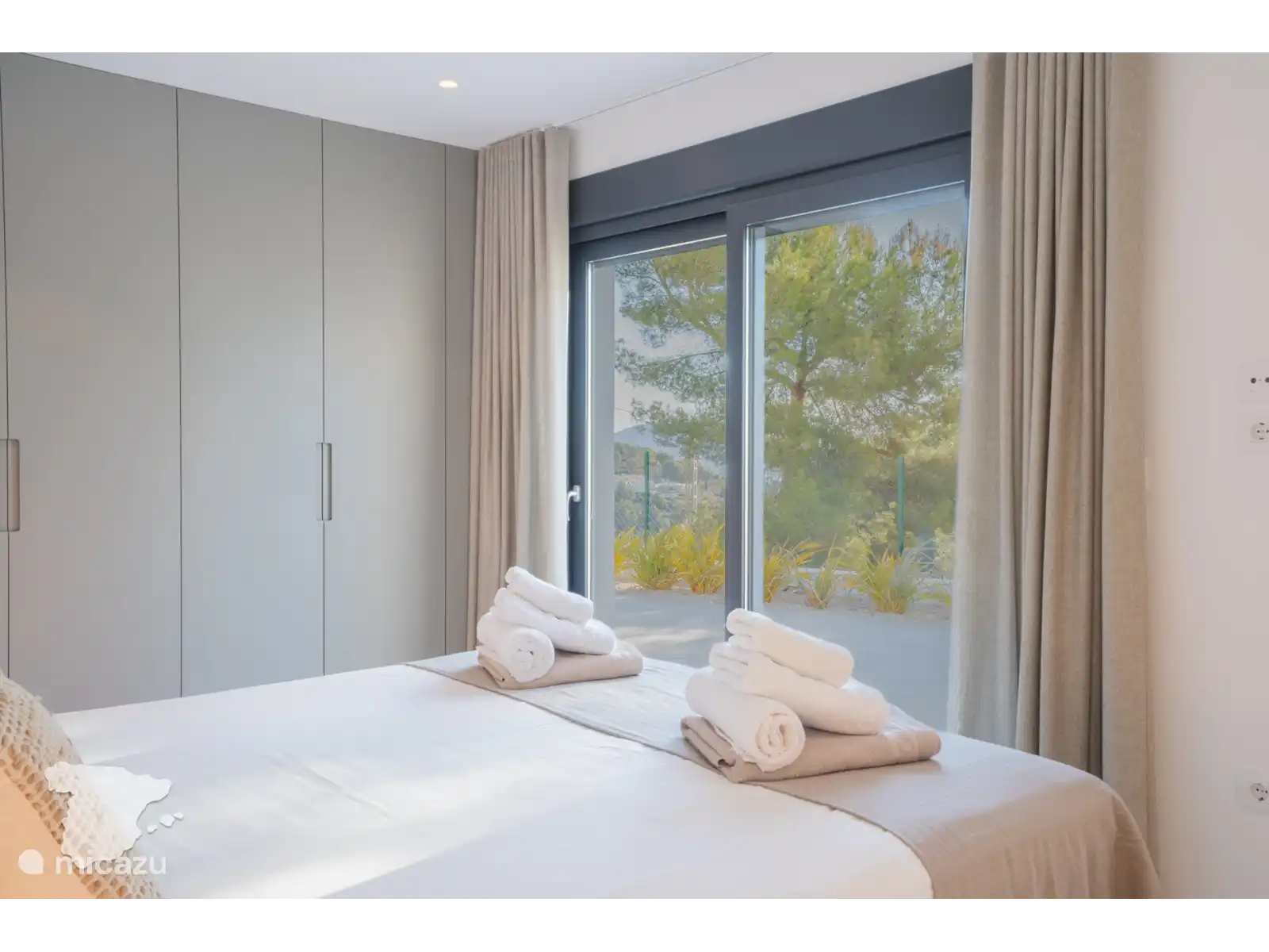 Il y a un total de 4 chambres. Tout d’abord, la spacieuse chambre principale bénéficie d’une salle de bain attenante avec douche à l’italienne, baignoire, deux lavabos, sèche-cheveux et toilettes. La deuxième chambre dispose également d’un lit double et d’une salle de bain attenante, avec douche à l’italienne, toilettes et lavabo. En face, dans le couloir, se trouvent les deux autres chambres, toutes deux avec un lit double. La troisième salle de bain séparée dispose d’une douche à l’italienne, de deux lavabos, d’un sèche-cheveux et de toilettes. Toutes les chambres disposent d’armoires encastrées, de la climatisation et d’un accès direct à la terrasse extérieure.