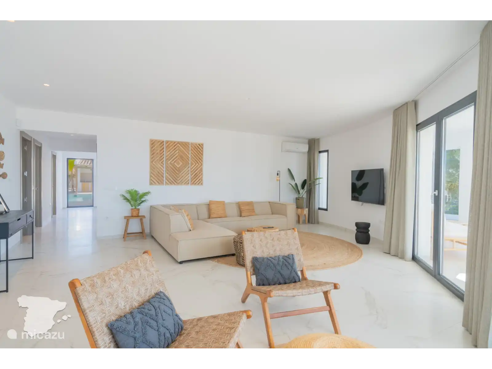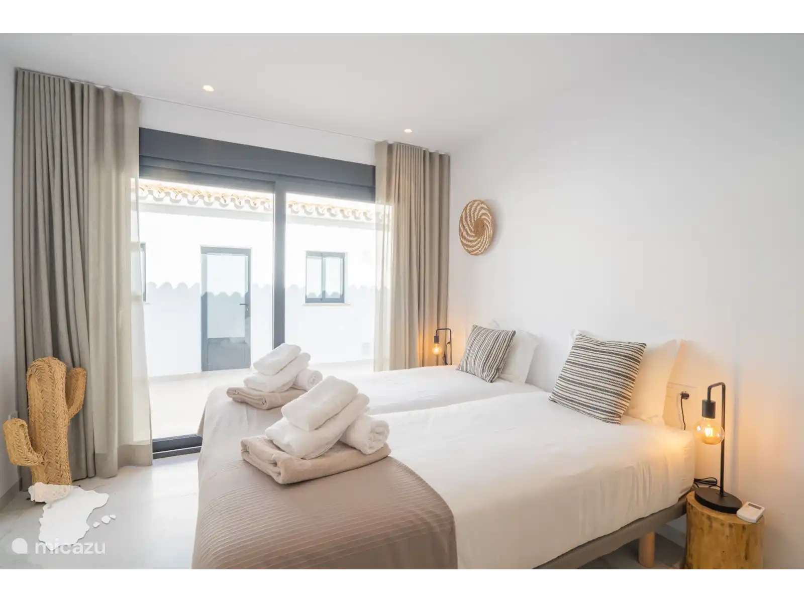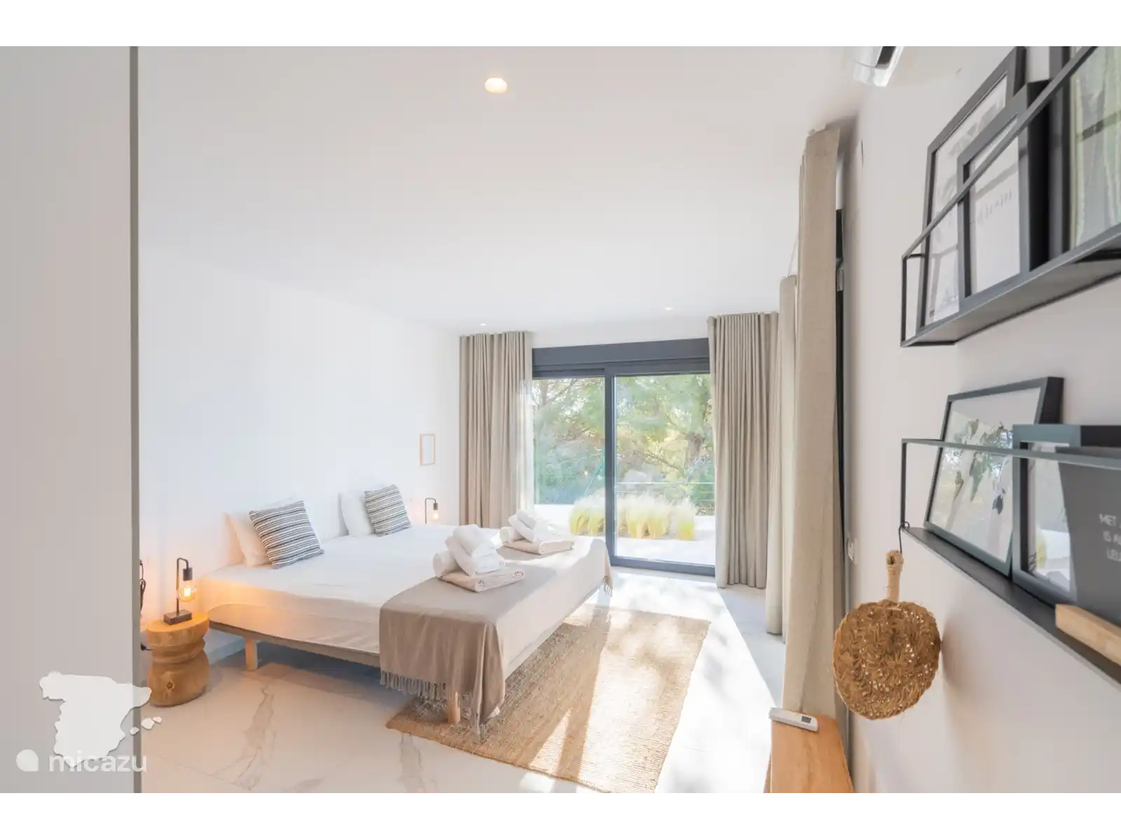 Il y a un total de 4 chambres. Tout d’abord, la spacieuse chambre principale bénéficie d’une salle de bain attenante avec douche à l’italienne, baignoire, deux lavabos, sèche-cheveux et toilettes. La deuxième chambre dispose également d’un lit double et d’une salle de bain attenante, avec douche à l’italienne, toilettes et lavabo. En face, dans le couloir, se trouvent les deux autres chambres, toutes deux avec un lit double. La troisième salle de bain séparée dispose d’une douche à l’italienne, de deux lavabos, d’un sèche-cheveux et de toilettes. Toutes les chambres disposent d’armoires encastrées, de la climatisation et d’un accès direct à la terrasse extérieure.