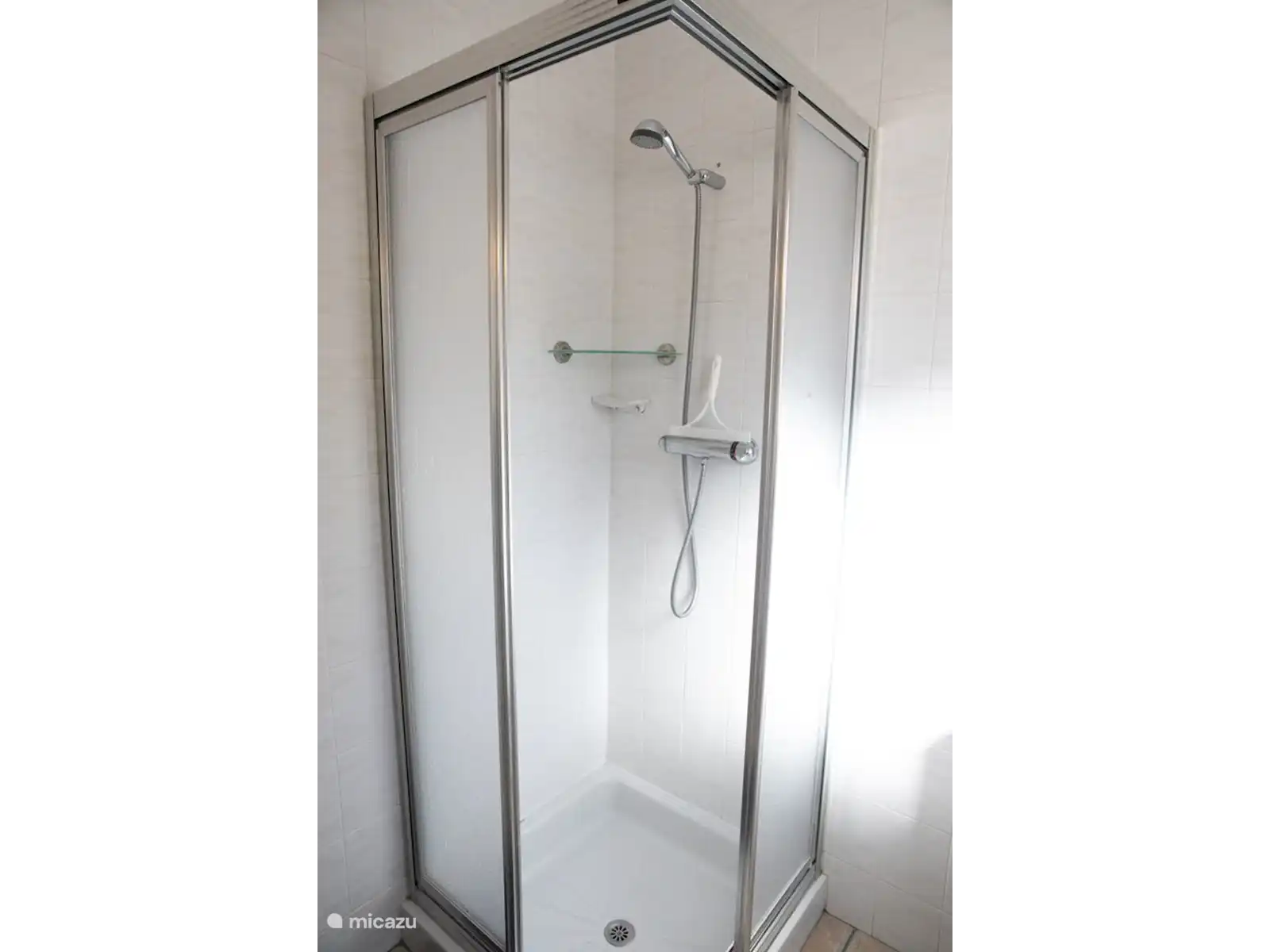 Depuis le hall à l’entrée (intérieur) ou depuis la terrasse extérieure au rez-de-chaussée, on atteint le dernier étage par des escaliers. On y trouve un grand salon (climatisation) avec un coin salon, la télévision par satellite avec Ned. Des canaux, une cheminée et une grande cuisine séparée avec lave-vaisselle, poêle à gaz, four, micro-ondes et machine à café Nespresso. Chambre 3 avec climatisation, grand électrique. Lit double réglable. Salle de bain 2 : douche et toilettes. Le salon a un 4-pers. Salle à manger (pouvant être agrandie à 6 personnes) avec une vue à couper le souffle. Accès au balcon/terrasse avec un joli jardin. On descend aussi les escaliers jusqu’à la terrasse avec barbecue qui mène aussi à la piscine.
