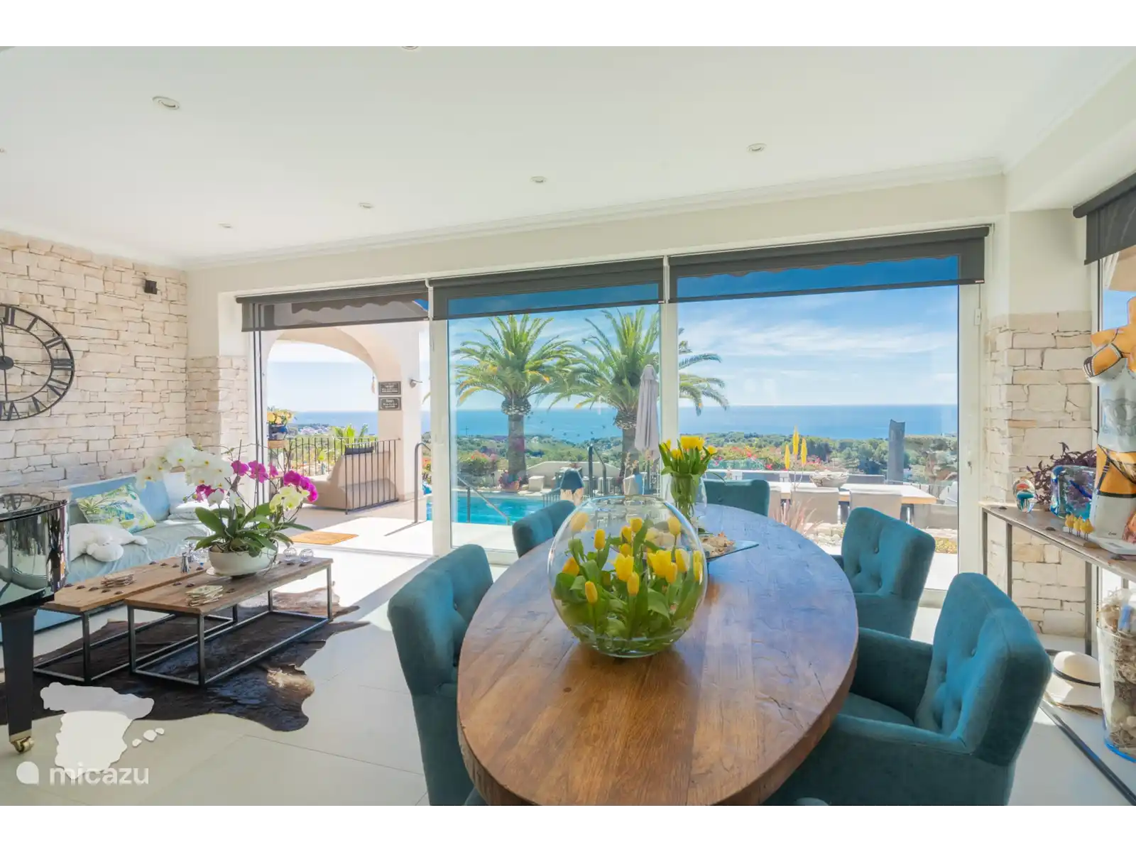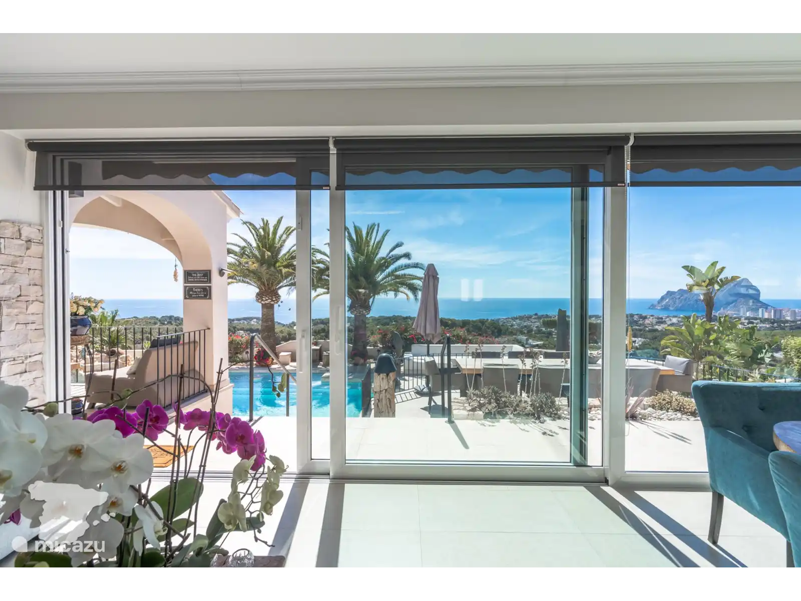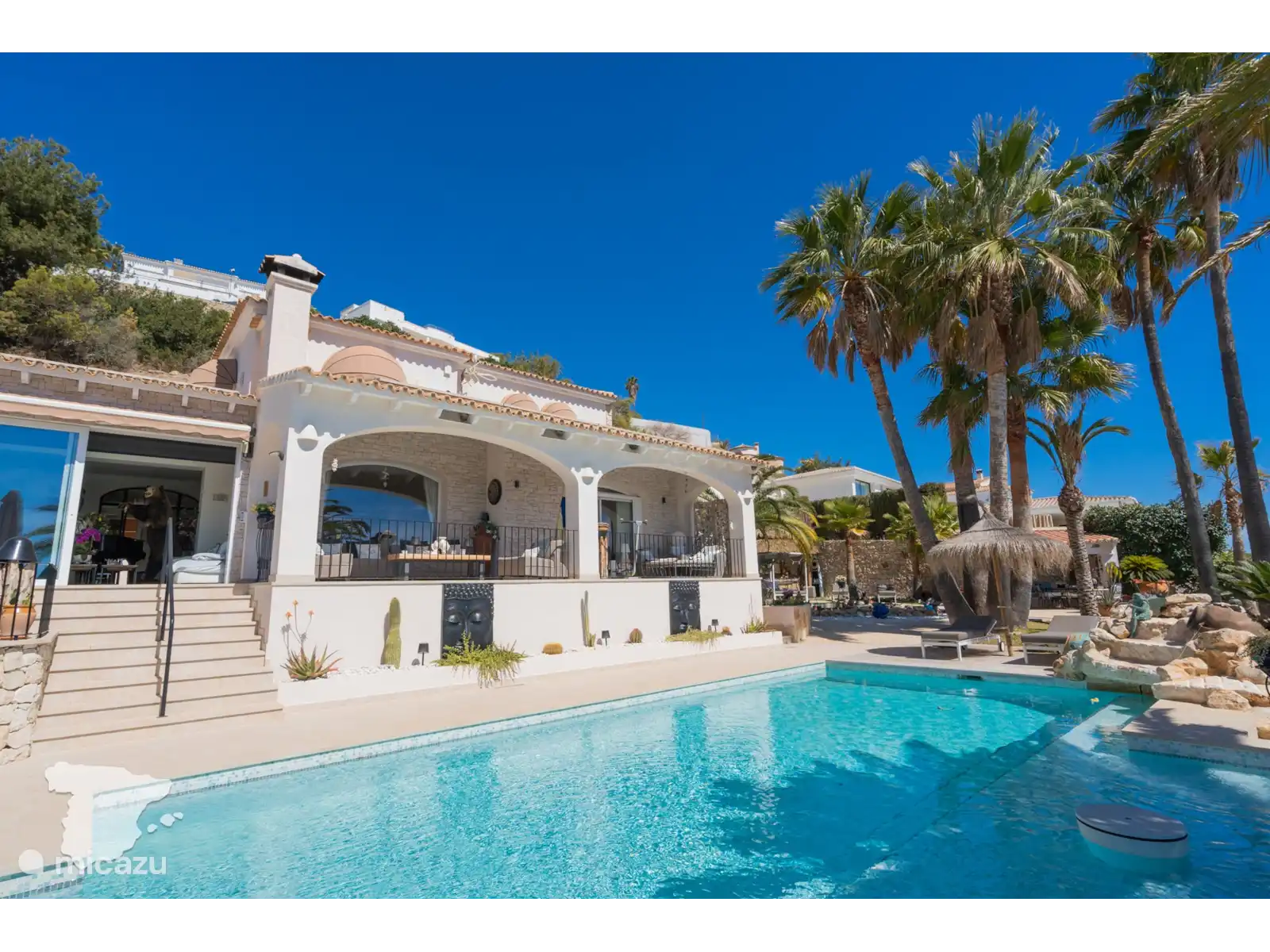 Profitez de la spacieuse cuisine extérieure couverte, équipée d’un coin repas et d’un barbecue, idéale pour les repas en plein air. De nombreux salons confortables et des chaises longues accueillantes vous invitent à vous détendre tout en profitant de la vue à couper le souffle, le tout dans les limites d’un jardin entièrement clôturé.