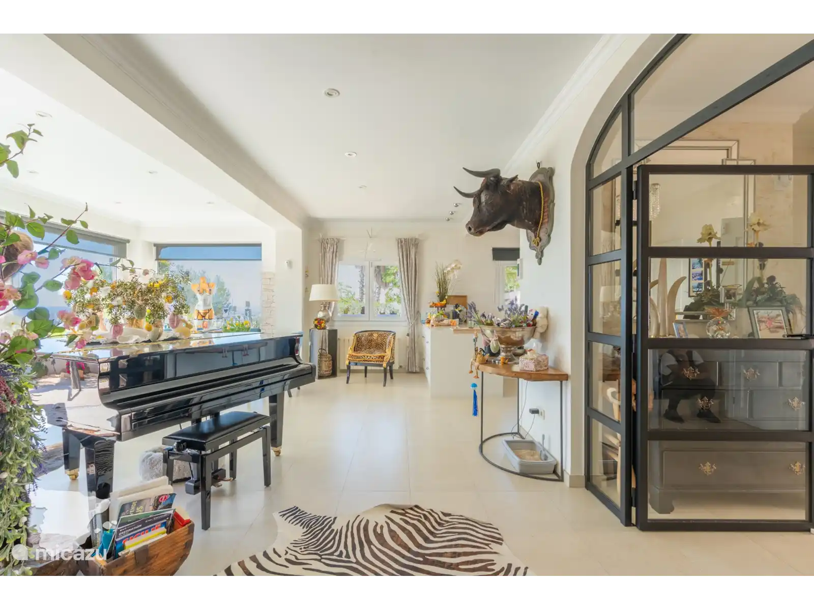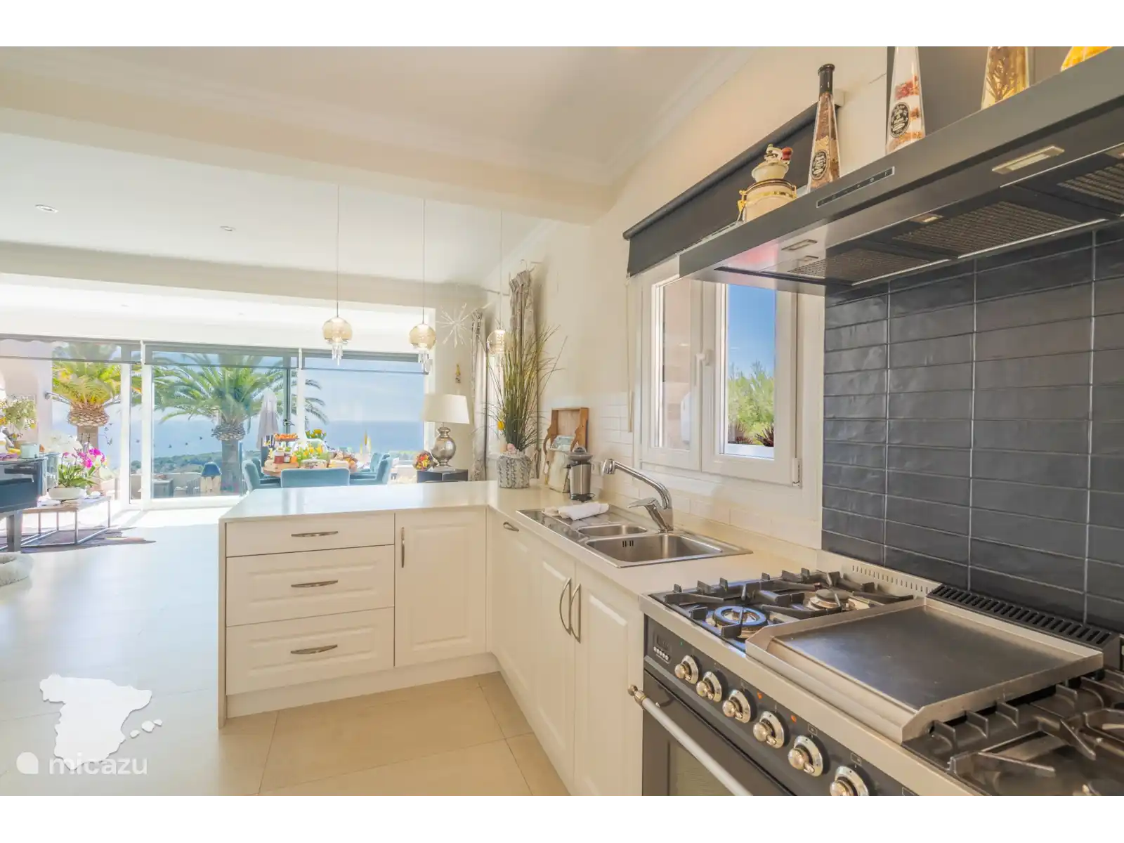 À côté des espaces de vie se trouve une cuisine entièrement équipée avec des équipements modernes, tels qu’un grand four, une cuisinière, un réfrigérateur / congélateur, un micro-ondes, un lave-vaisselle et un lave-linge. Un couloir pratique mène à une petite salle de bains avec toilettes et lavabo, ainsi qu’à l’opulente chambre principale, avec une luxueuse salle de bains attenante avec douche à l’italienne, baignoire, toilettes et double vasque, ainsi que des équipements tels que la climatisation, un ventilateur, une télévision avec TV Vlaanderen et une armoire.