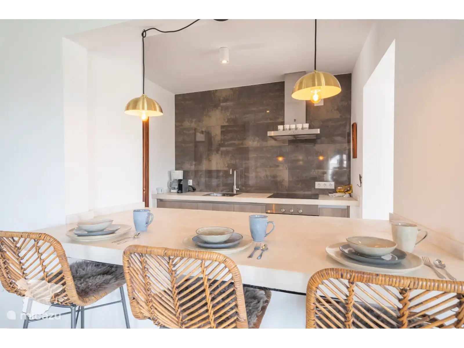 Au dernier étage, vous trouverez deux chambres, une salle de bain, un salon et une cuisine. Le salon, la salle à manger et la cuisine décloisonnés de conception moderne avec de nombreux sièges, une télévision intelligente et une connexion Wi-Fi gratuite (fibre optique) sont un endroit merveilleux pour profiter de vos vacances. Pour nos clients culinaires, la cuisine moderne est équipée de tout ce dont vous avez besoin, y compris un lave-vaisselle, un four, une plaque à induction, un réfrigérateur et un congélateur et un bar pour le petit-déjeuner.